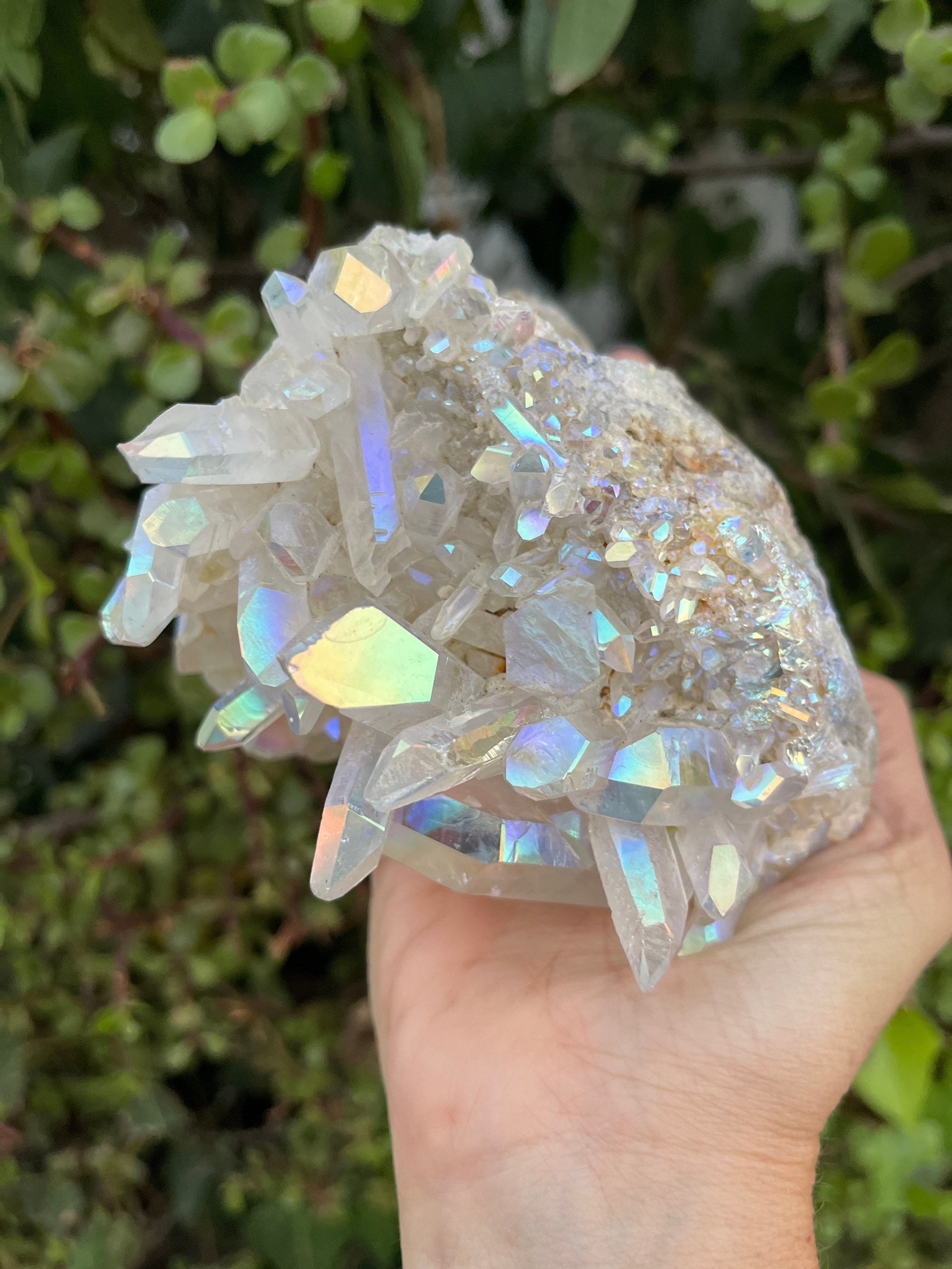 I am so in love with these pieces and the wonderful energy they hold. Quartz has been placed in a chamber in which Platinum, Silver and other metal oxides are introduced in vaporized form and caused to bond with the Quartz.