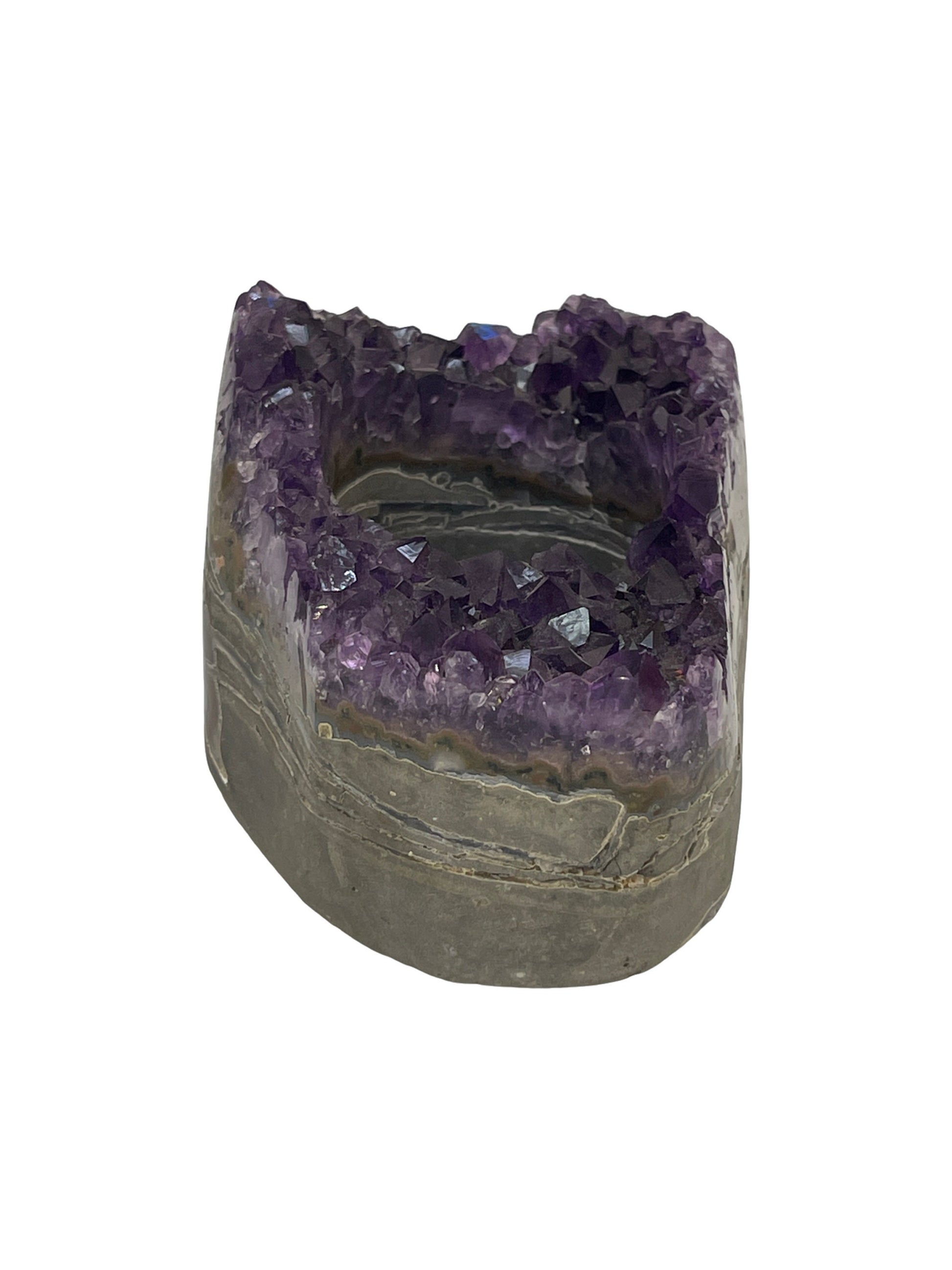 Illuminate your space with beauty and great energy with this Amethyst candle holder. This is a gorgeous piece with nice color and points that give a great sparkle. This beauty is a great home for air plants!