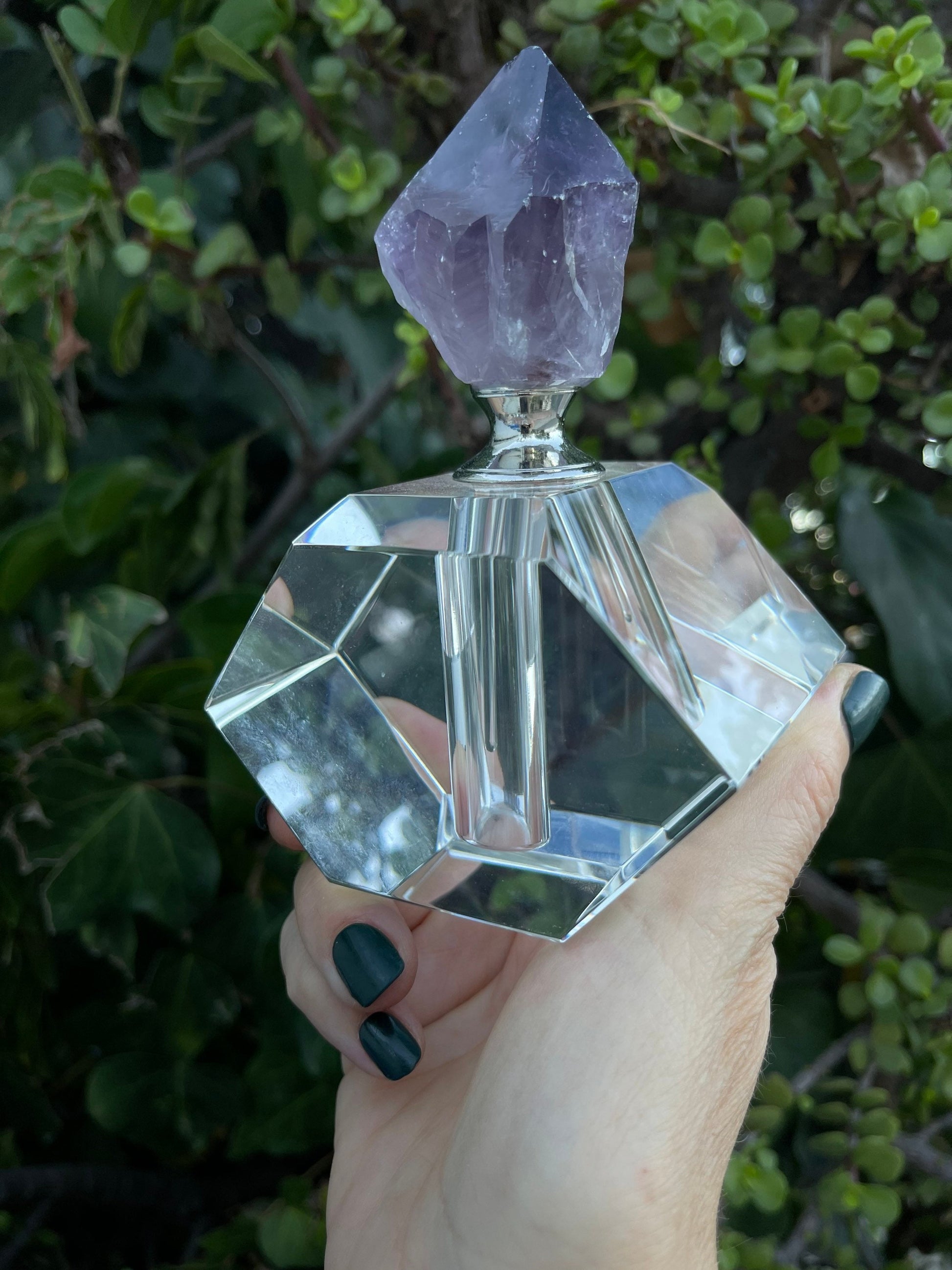 Amethyst Perfume Bottle, Amethyst Point Bottle Topper, Cut Glass Bottle, Decorative Bottles, Best Holiday gifts, Essential Oil Gift for her