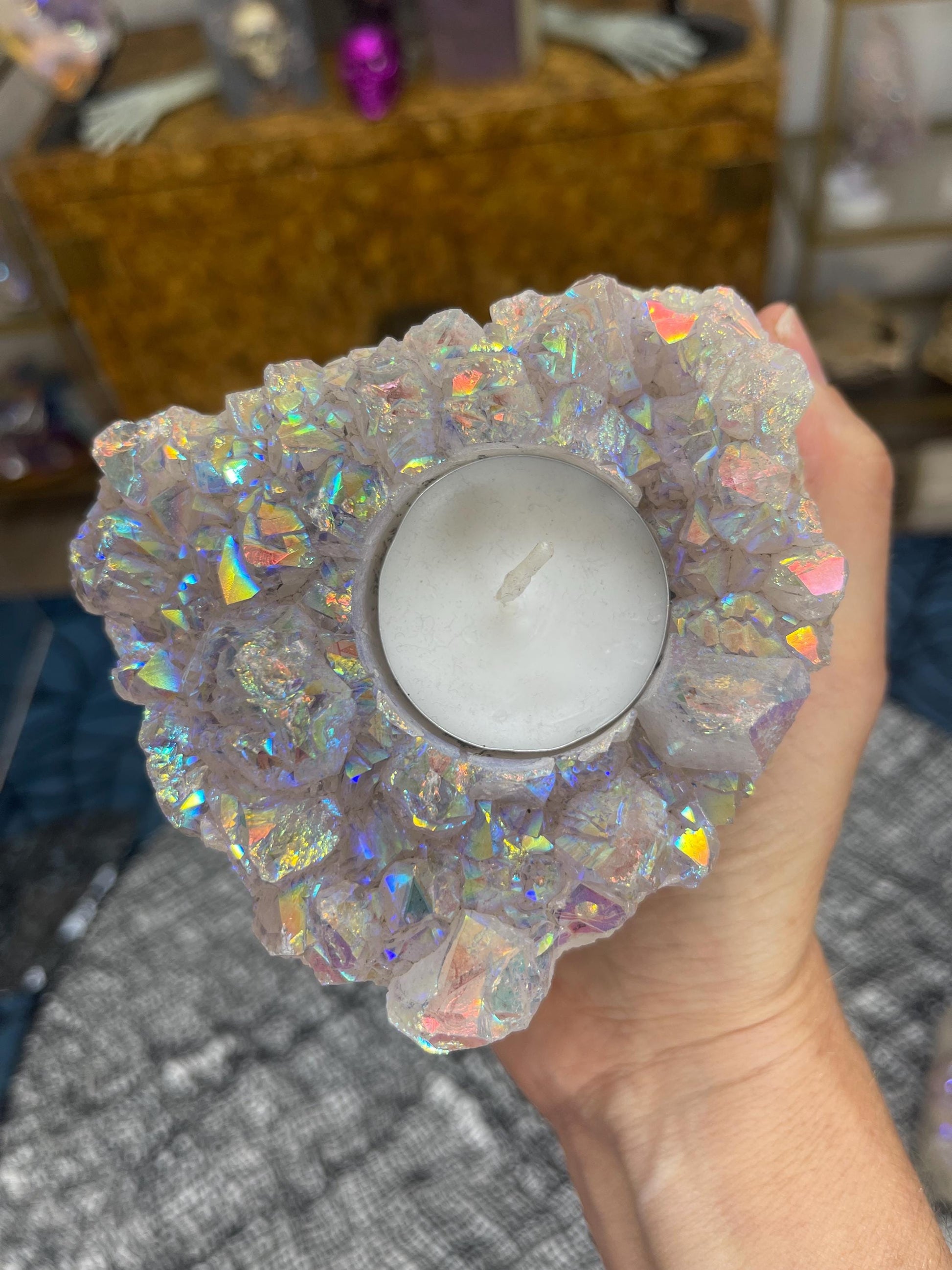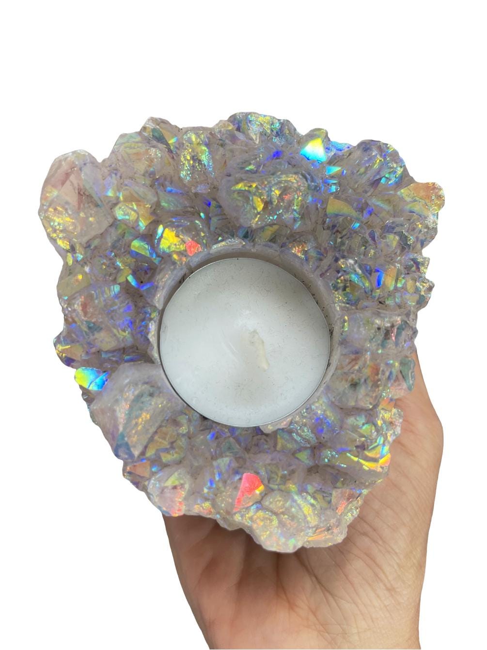 Angel Aura Candle Holder, Aura Amethyst Candle Holder, Rainbow Aura Crystals, Home Decor, Crystal Candleholders, Angel Aura Quartz