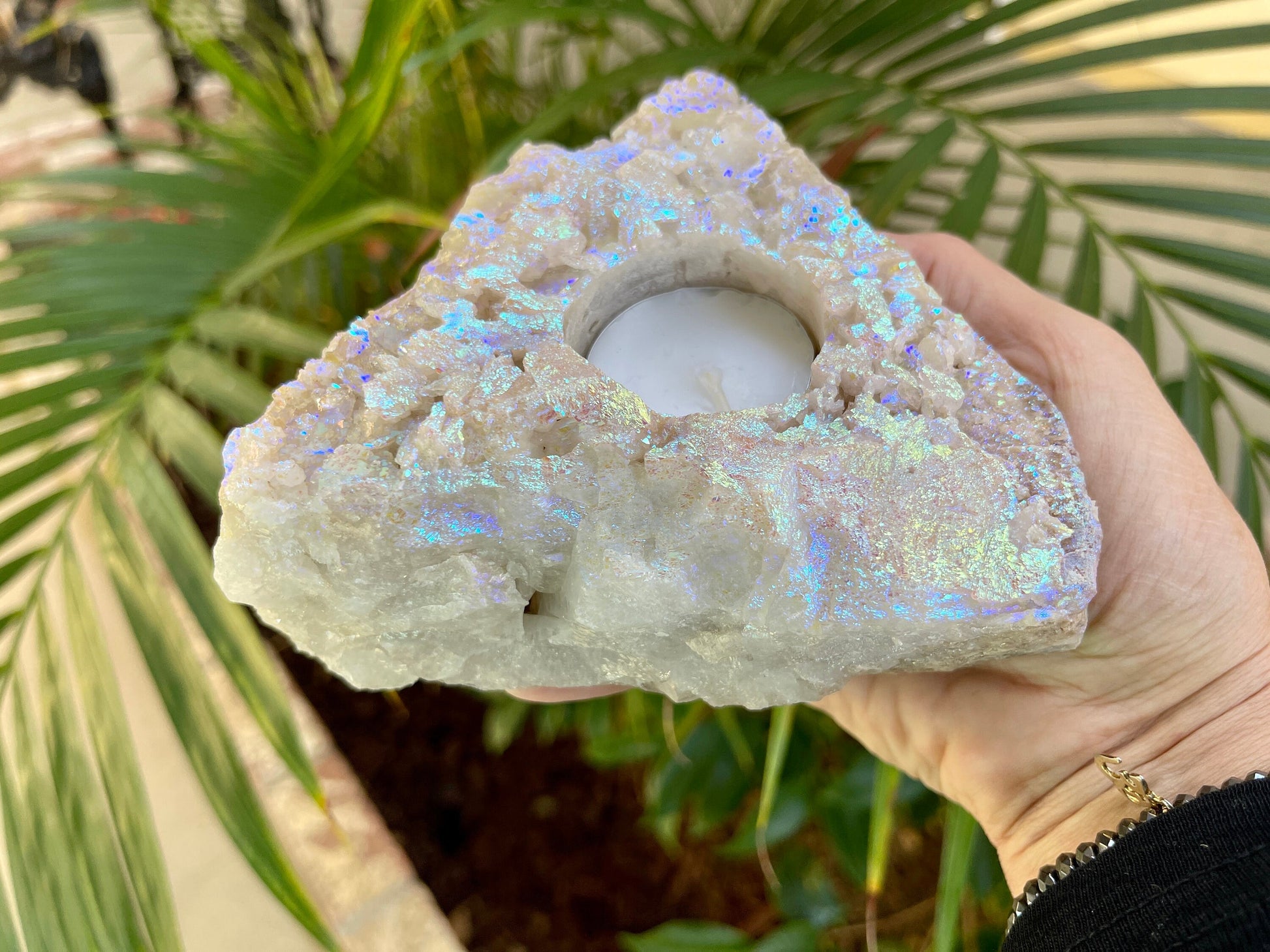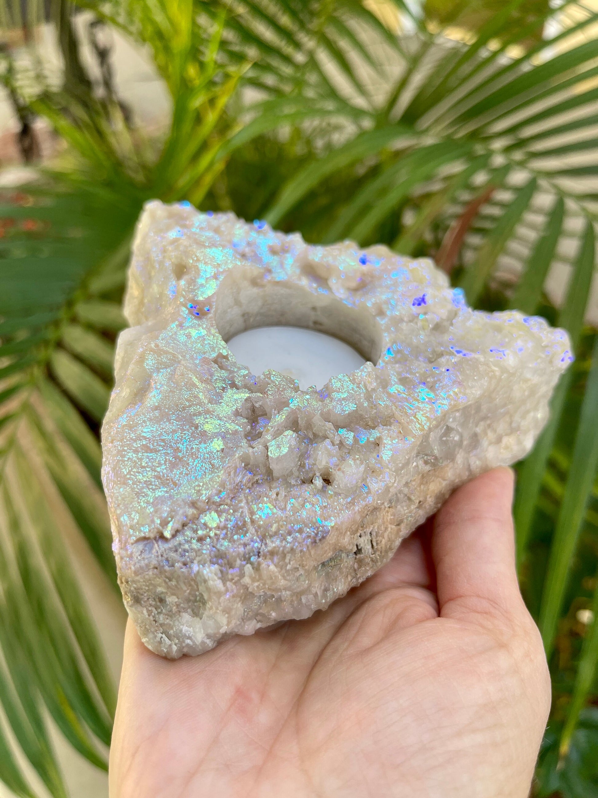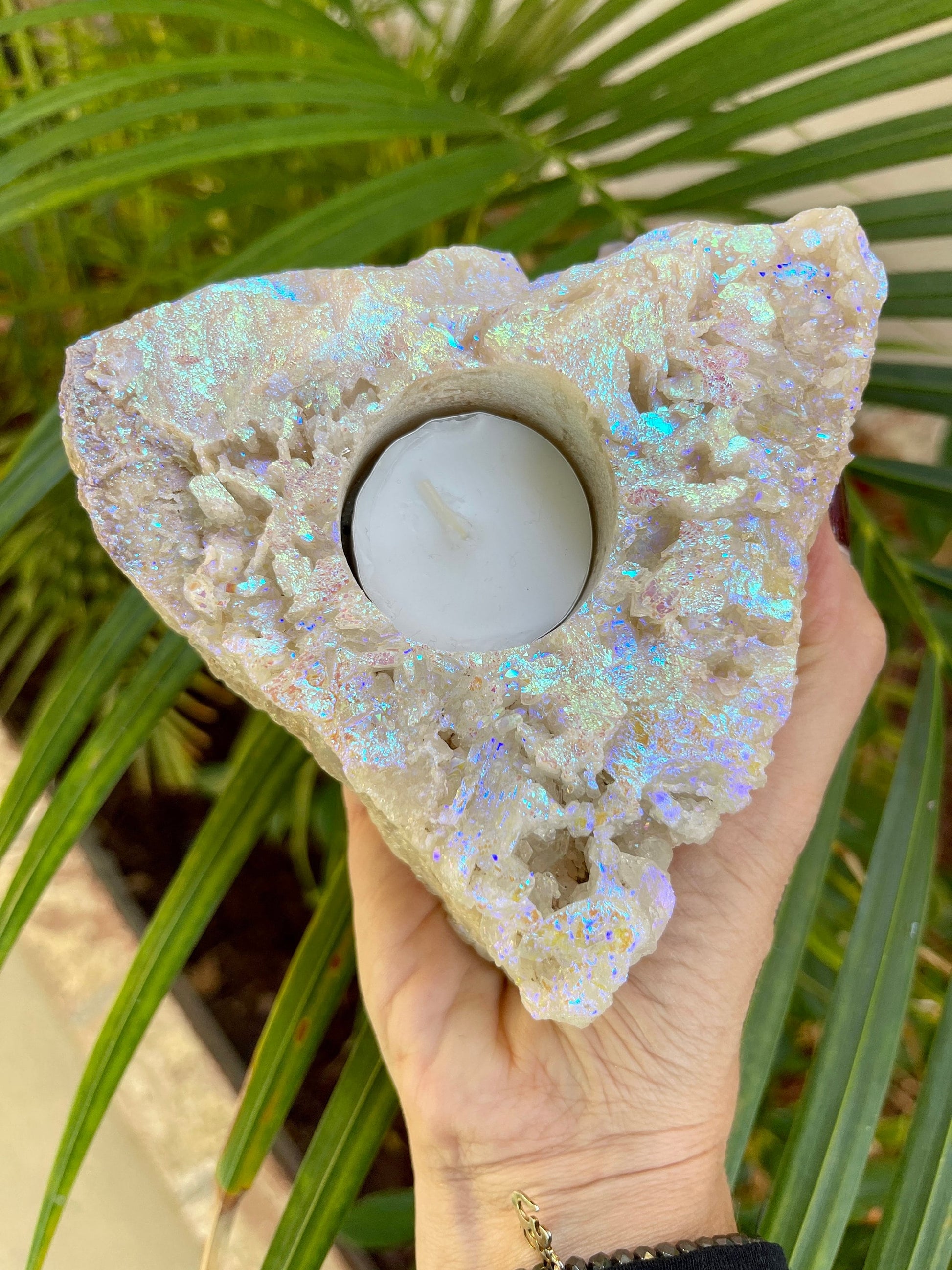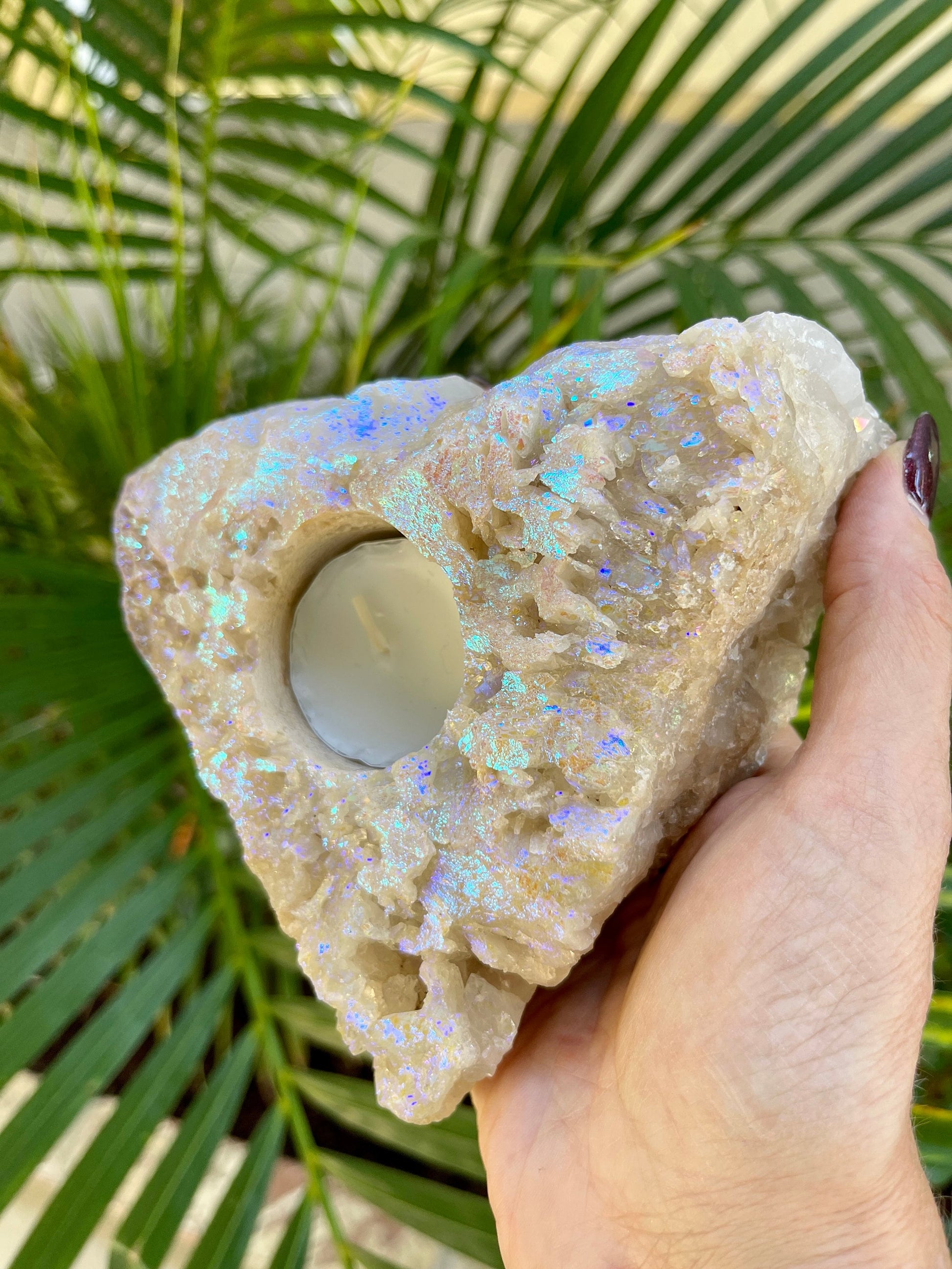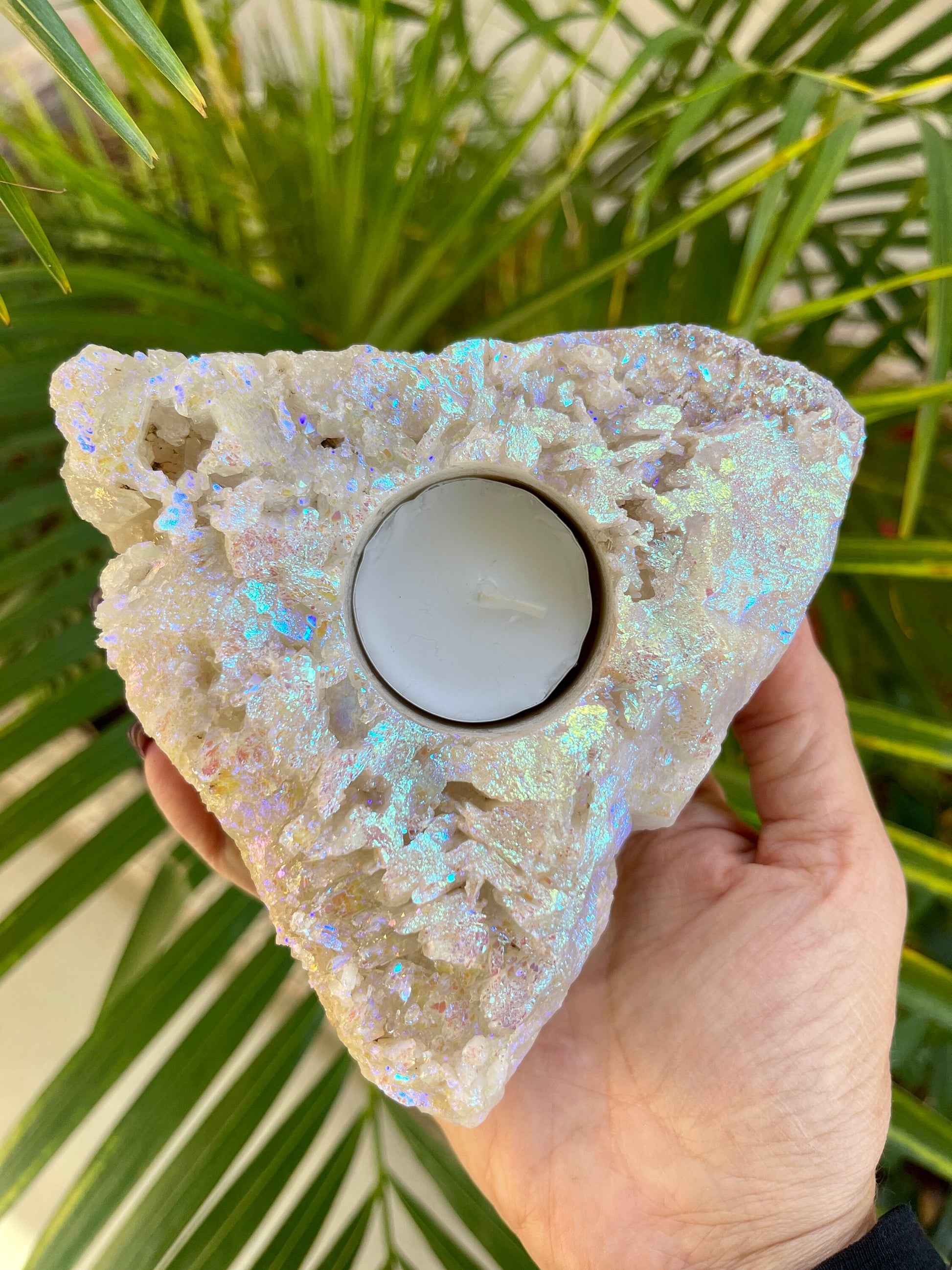 Angel Aura Quartz Candle Holder, Aura Quartz Crystals, Home Decor, Quartz Cluster, Meditation tools, Housewarming gifts