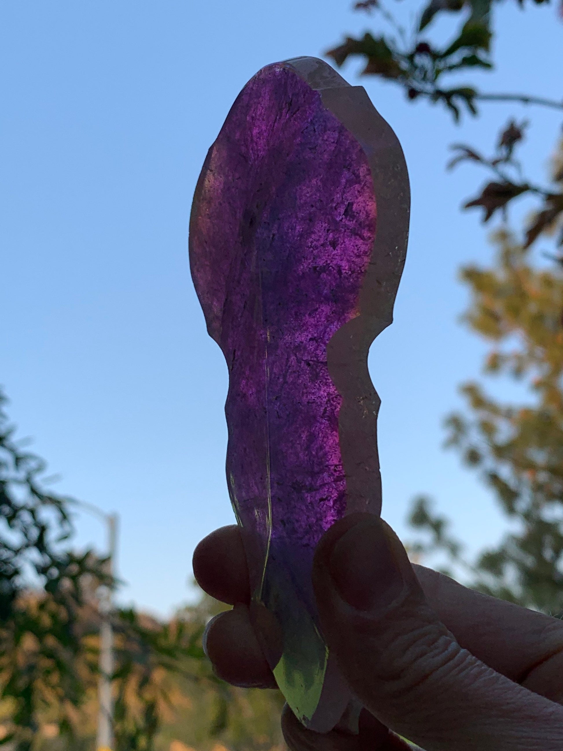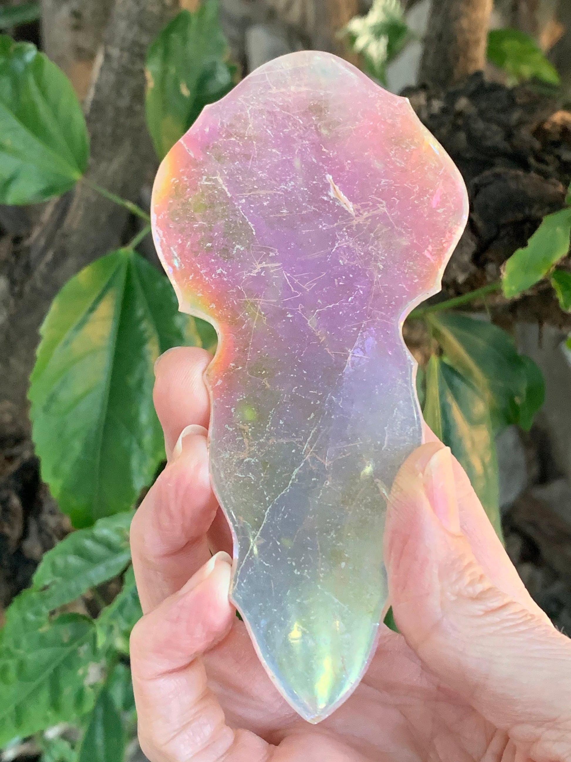 I am so in love with these pieces and the wonderful energy they hold. Quartz has been placed in a chamber in which Platinum, Silver and other metal oxides are introduced in vaporized form and caused to bond with the Quartz.