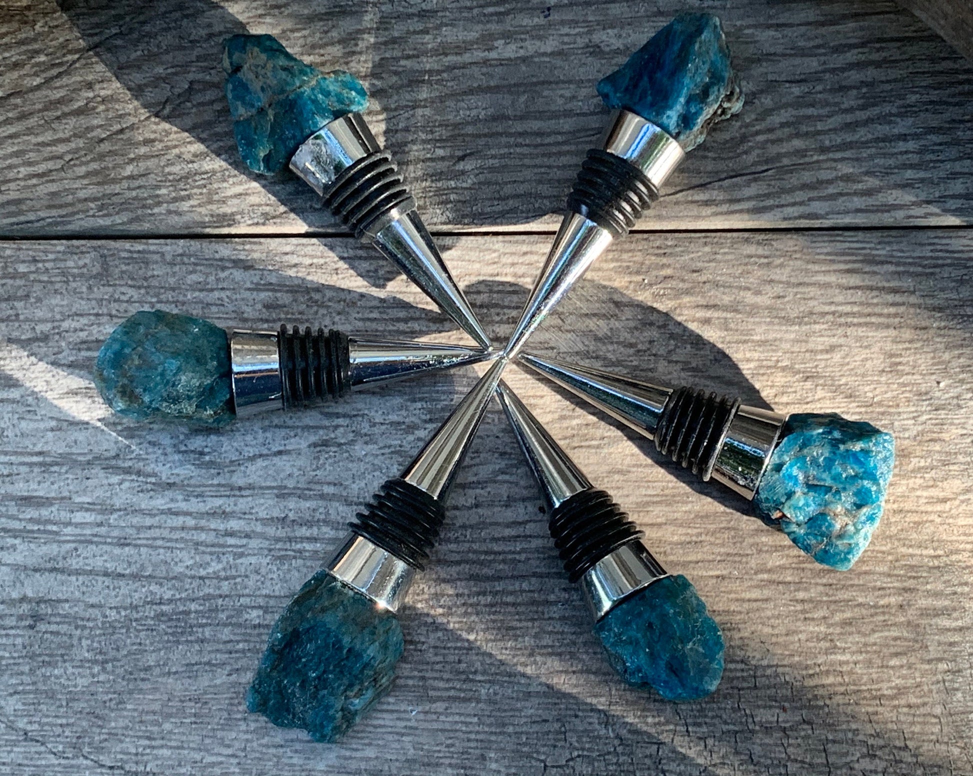 Elevate your entertaining game and serve up some positive vibes with these beautiful, raw Apatite bottle stoppers. These will add beauty, style and great energy to your home.