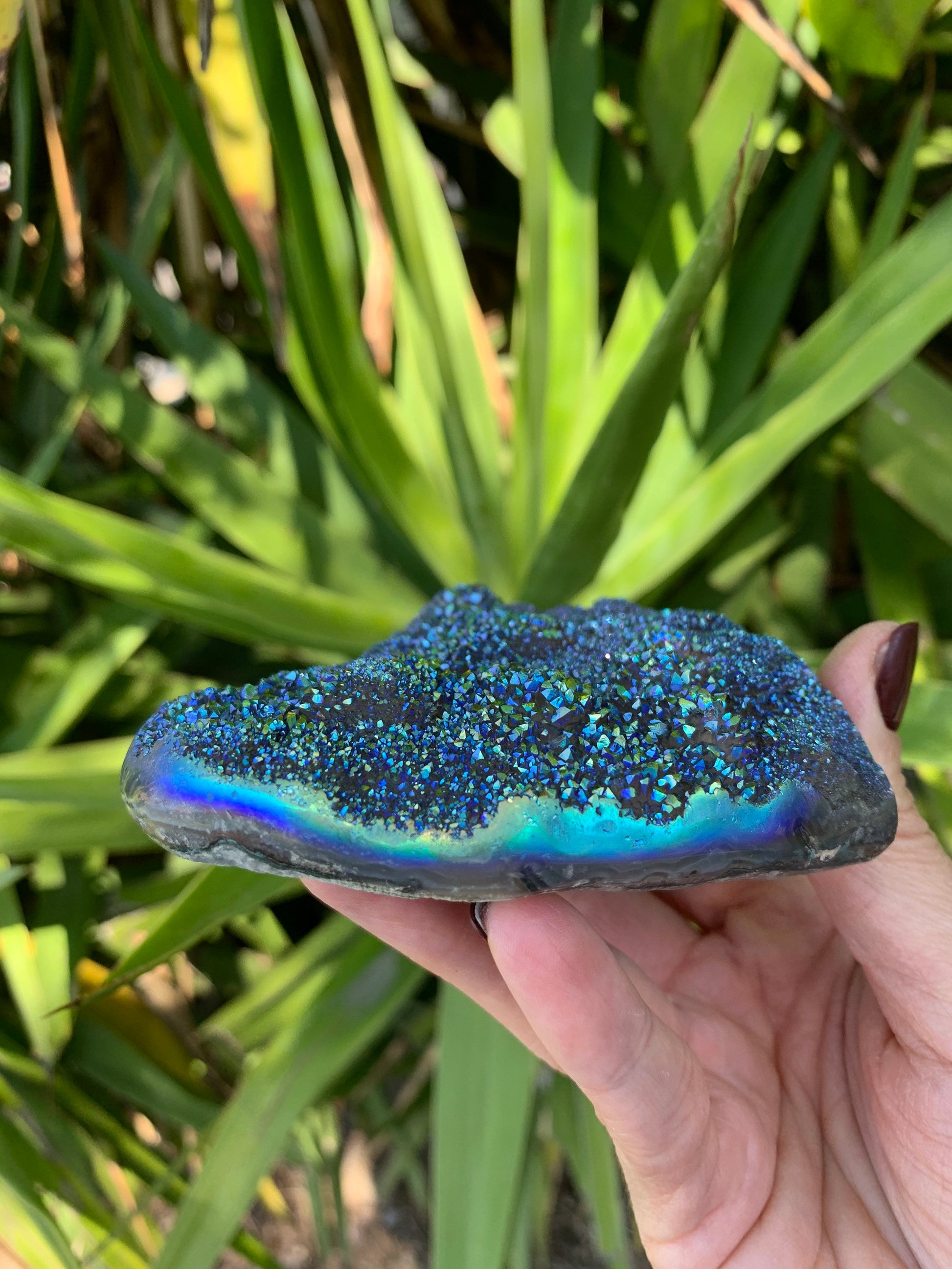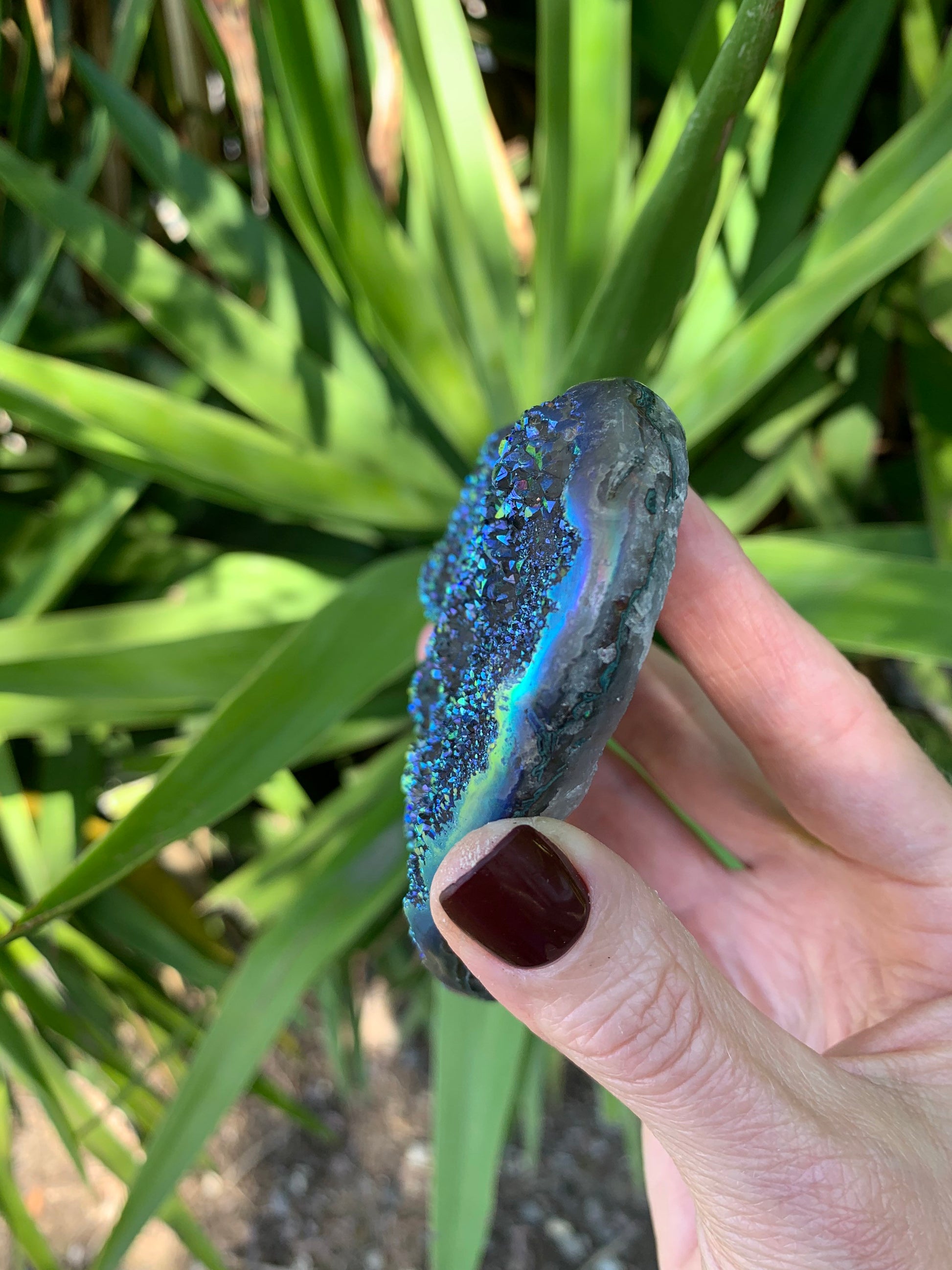 I am so in love with these pieces and the wonderful energy they hold. Amethyst has been placed in a chamber in which Titanium and other metal oxides are introduced in vaporized form and caused to bond with the Quartz.