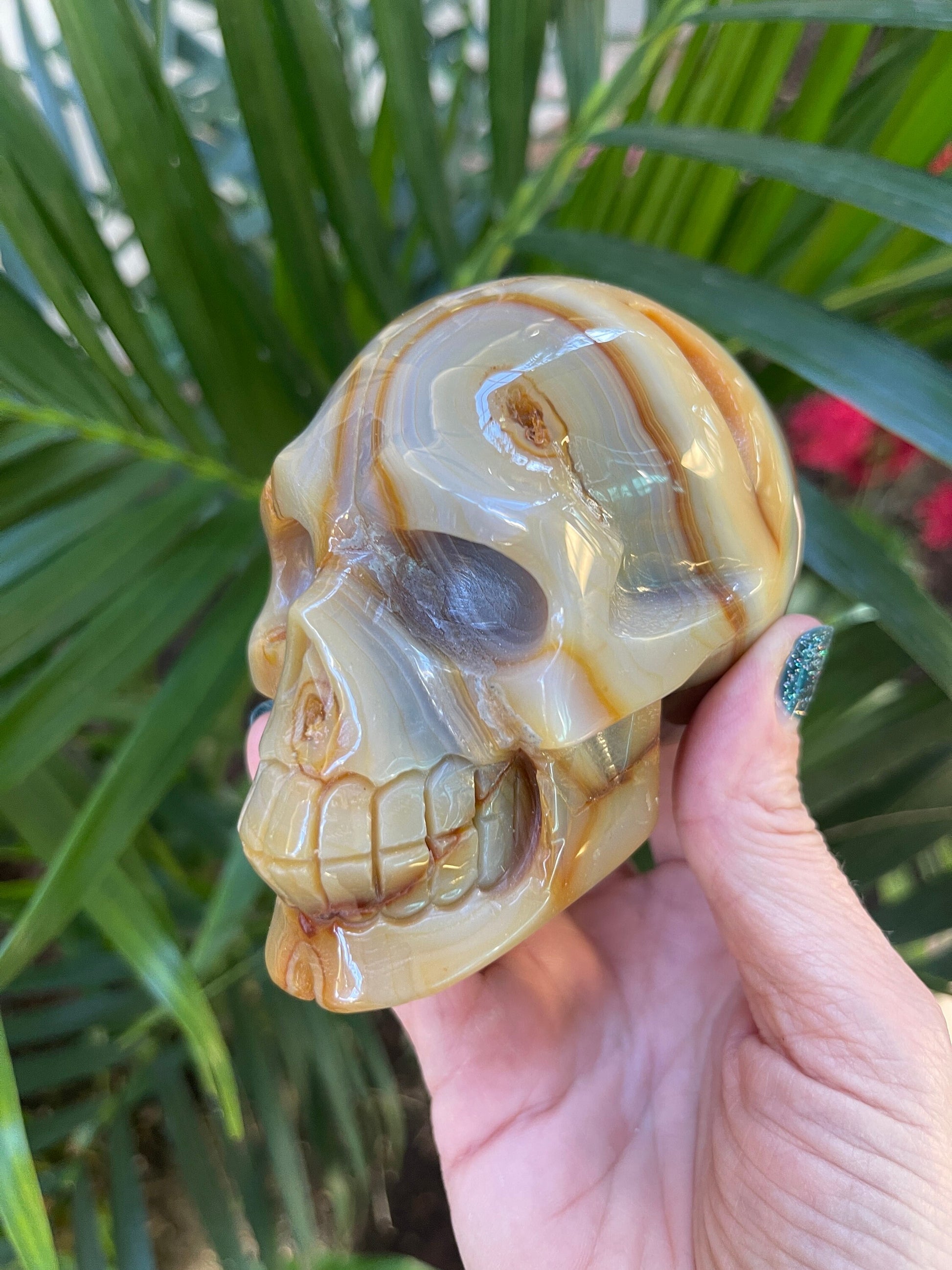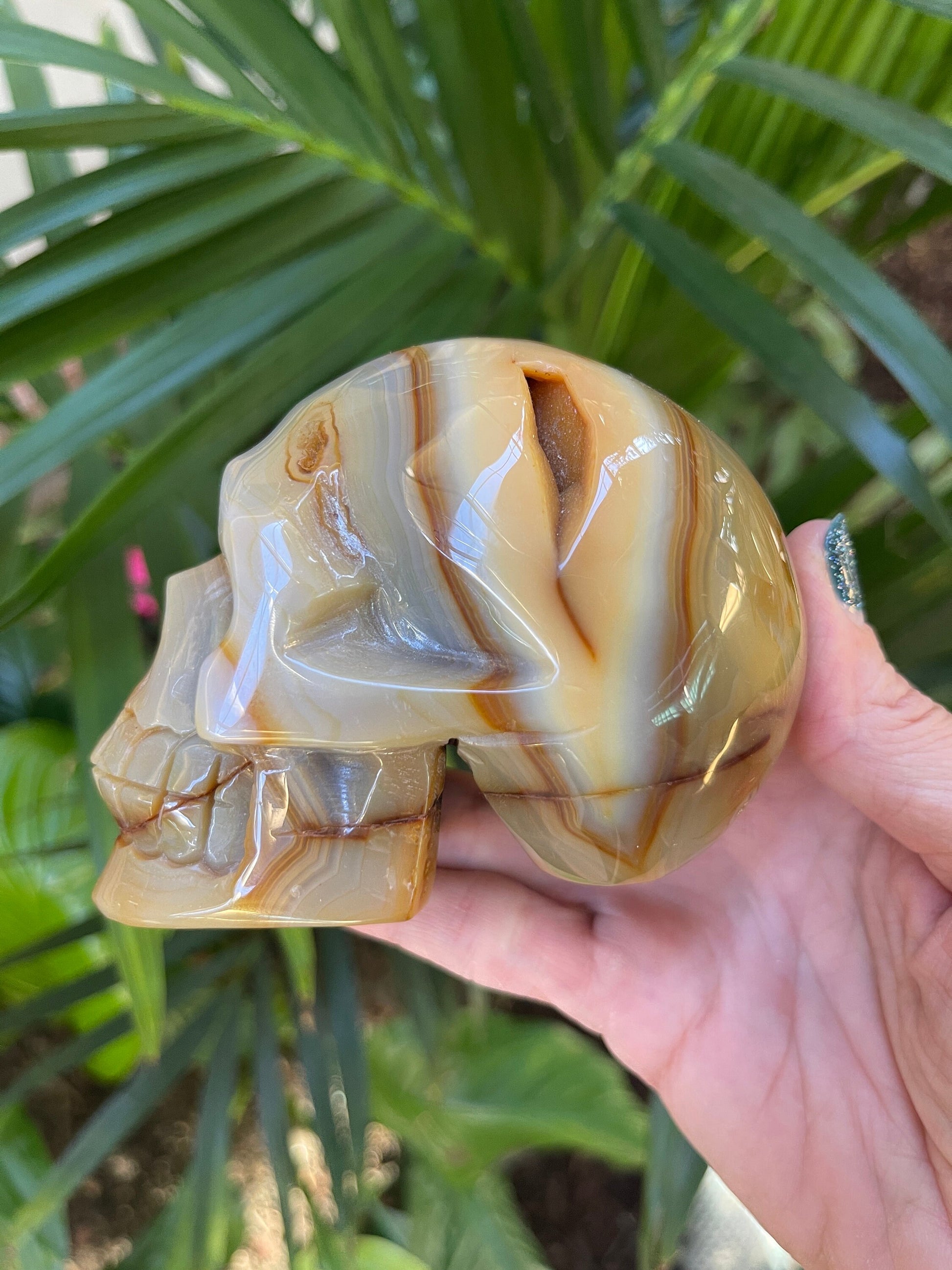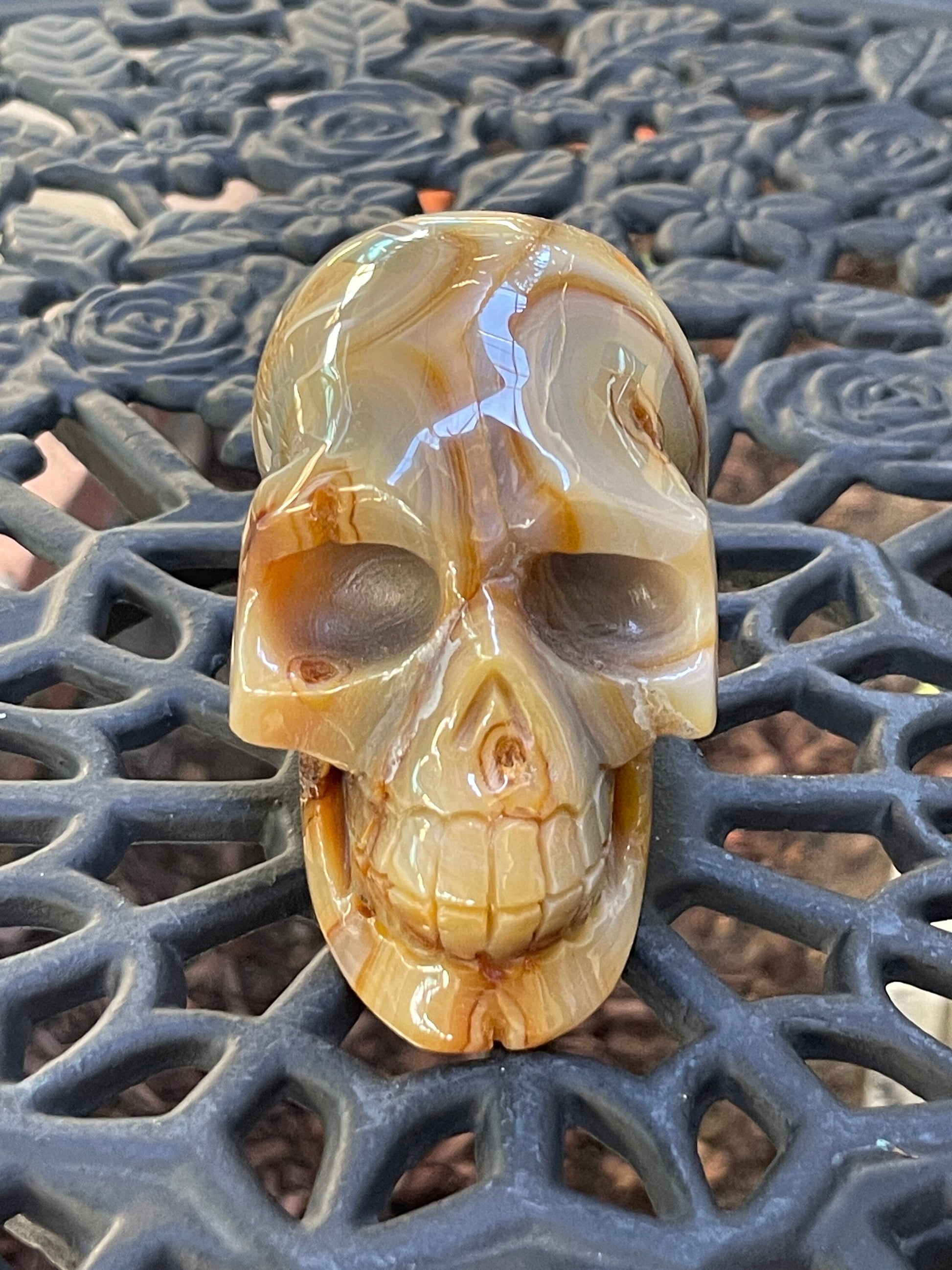 Illuminate your space with beauty and positive energy with this beautiful Carnelian skull. I love the little druzy cave & gorgeous paterrns in this one! This will make a fabulous adfition to any skull lover's collection.