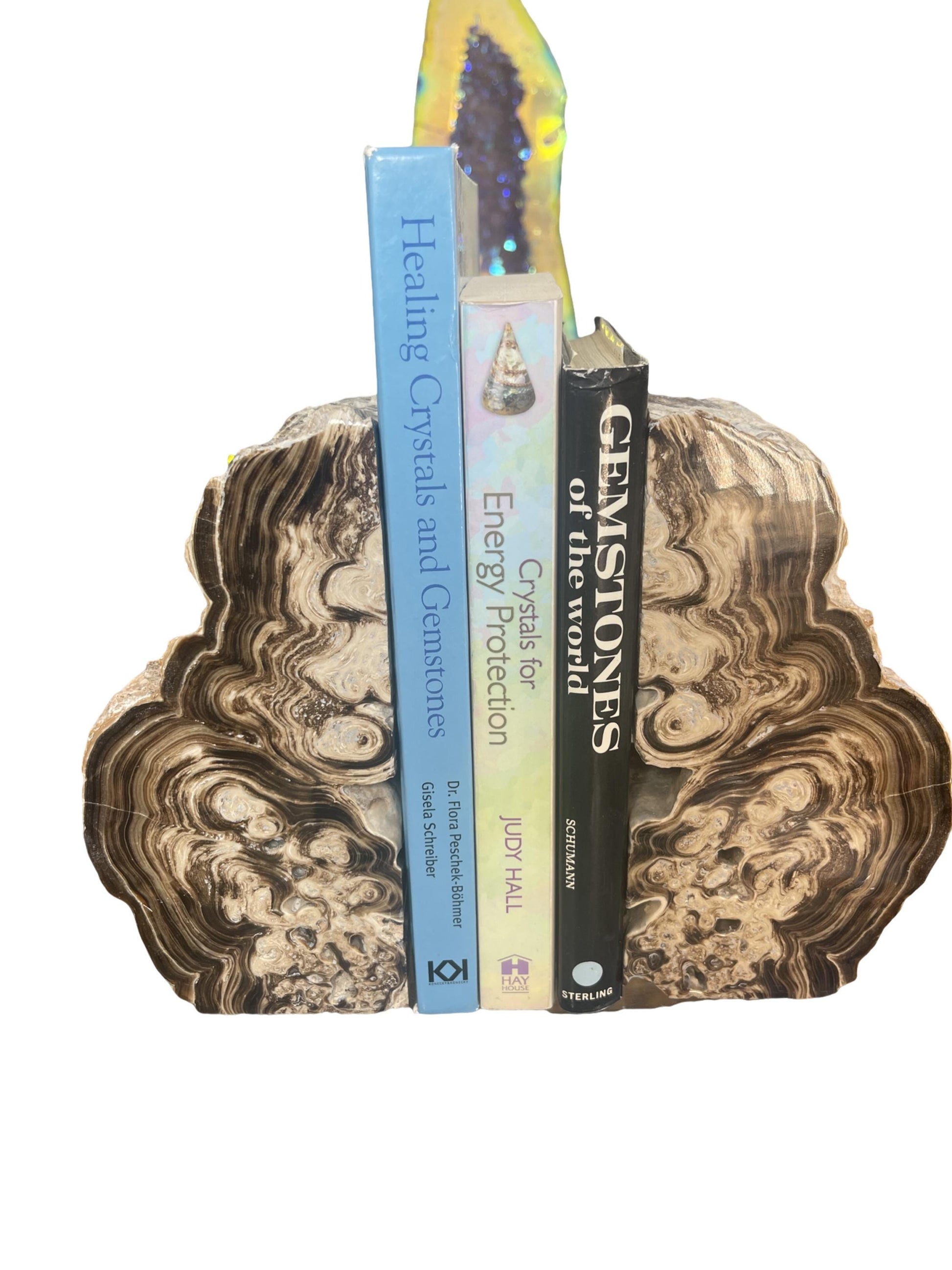 Elevate your bookshelf with these stunning handcrafted Chocolate Calcite bookends, designed to bring balance, clarity, and grounding to any space. These unique crystal bookends not only organize your favorite reads but also infuse your home with the calming and stabilizing energy of Chocolate Calcite.