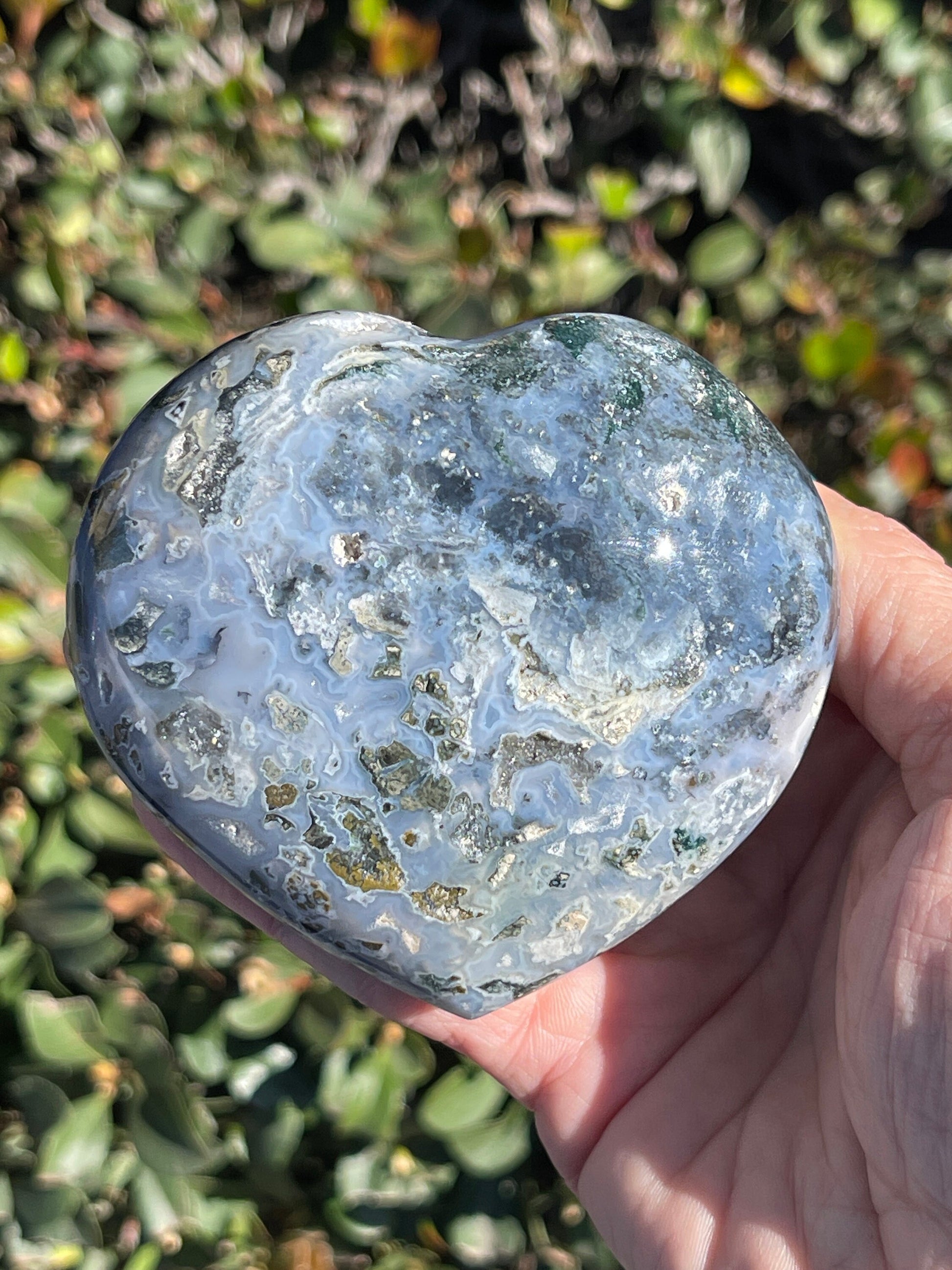 Illuminate your vibration with the calming energy and beauty in this amazing Cosmic Jasper heart. This is a beauty! I love all the wonderful shades of blue, violet, and darker accent colors. So pretty!
