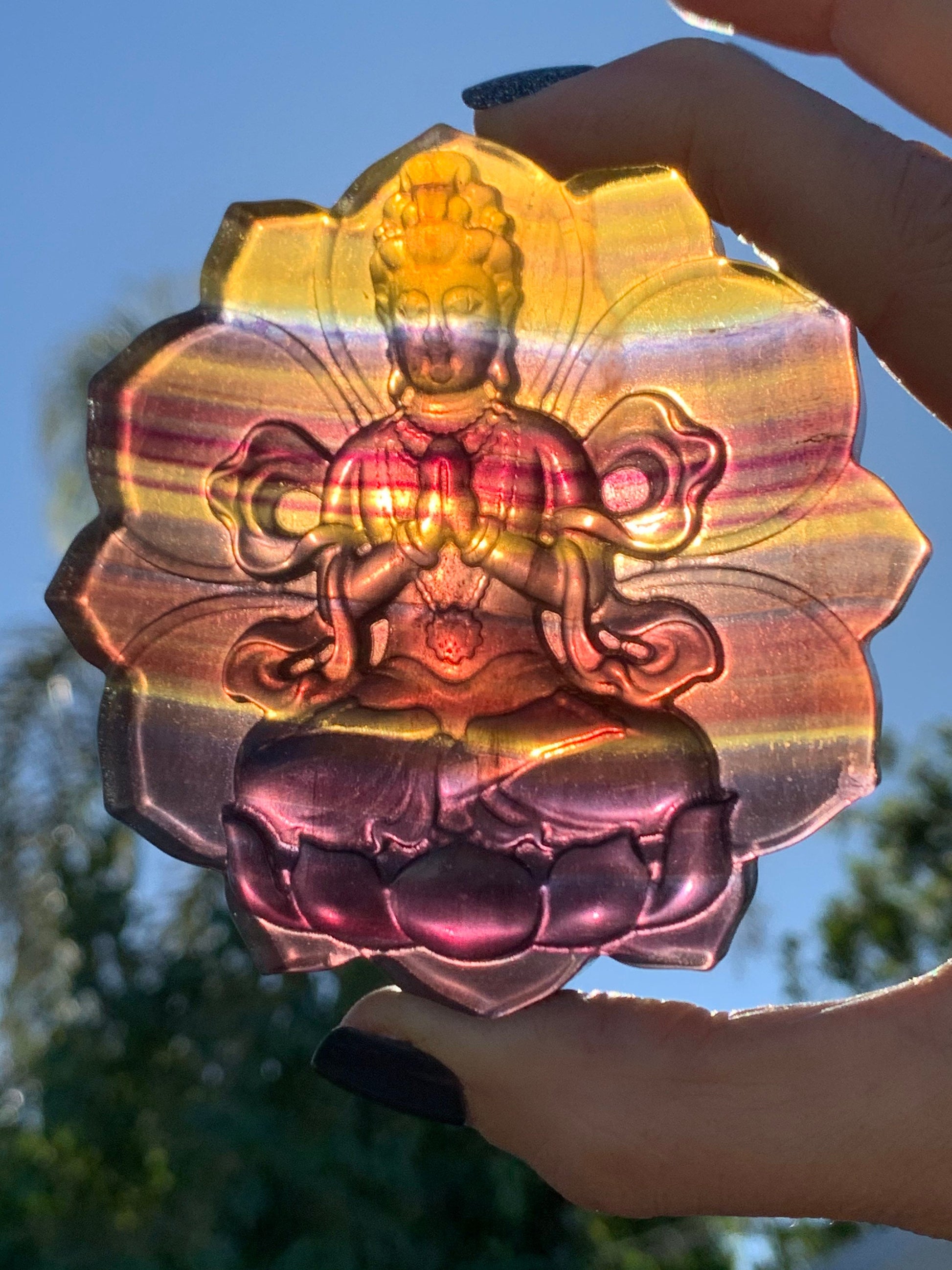 Fluorite Buddha Mandala, Rainbow Fluorite, Fluorite Carving, Crystal Buddha, Zen Decor, Meditation, Crystal Shop