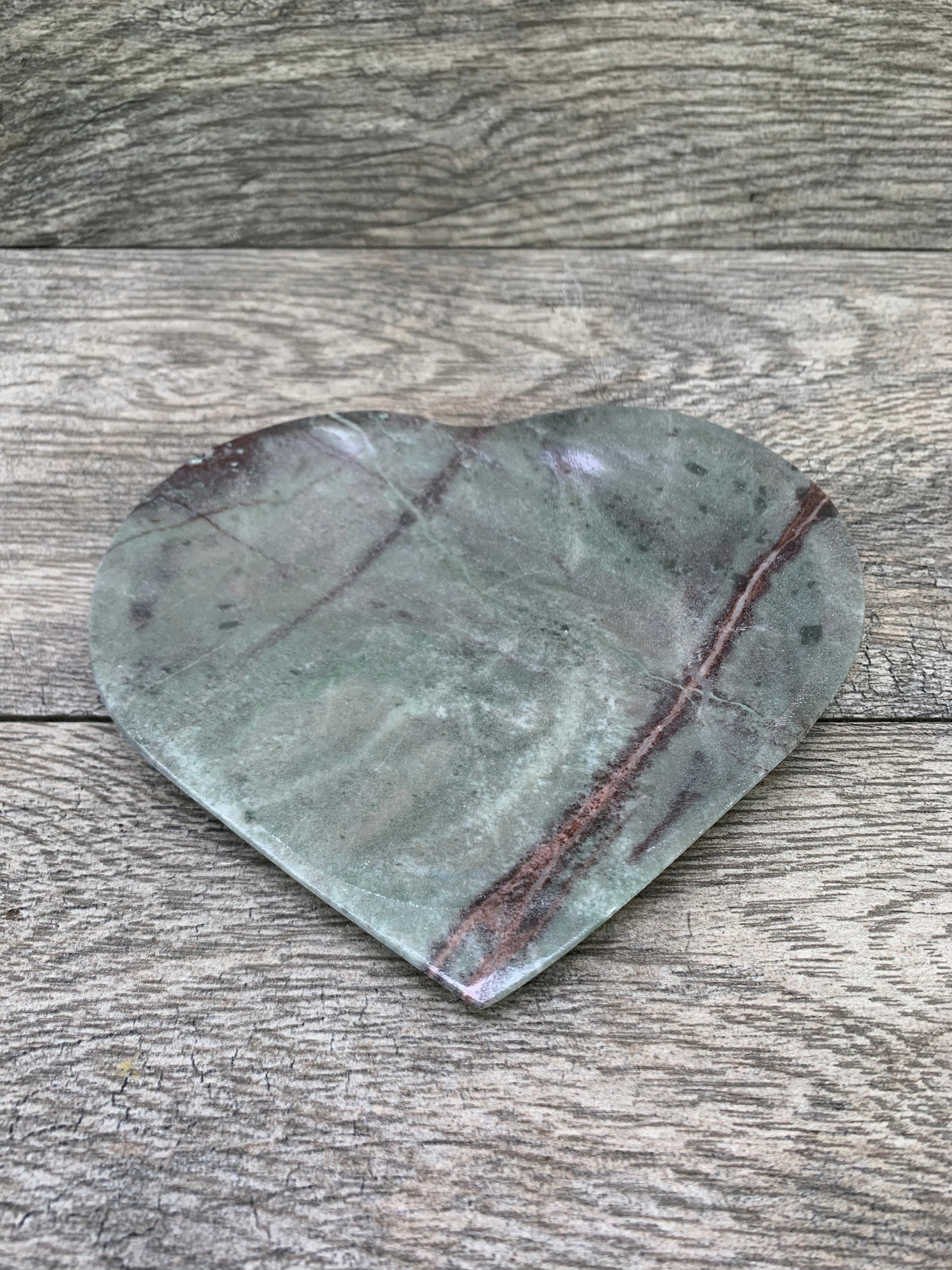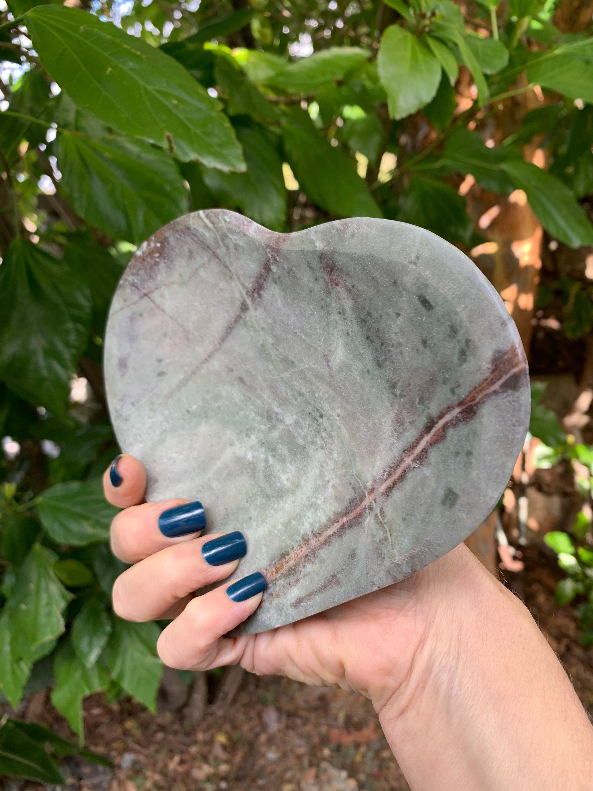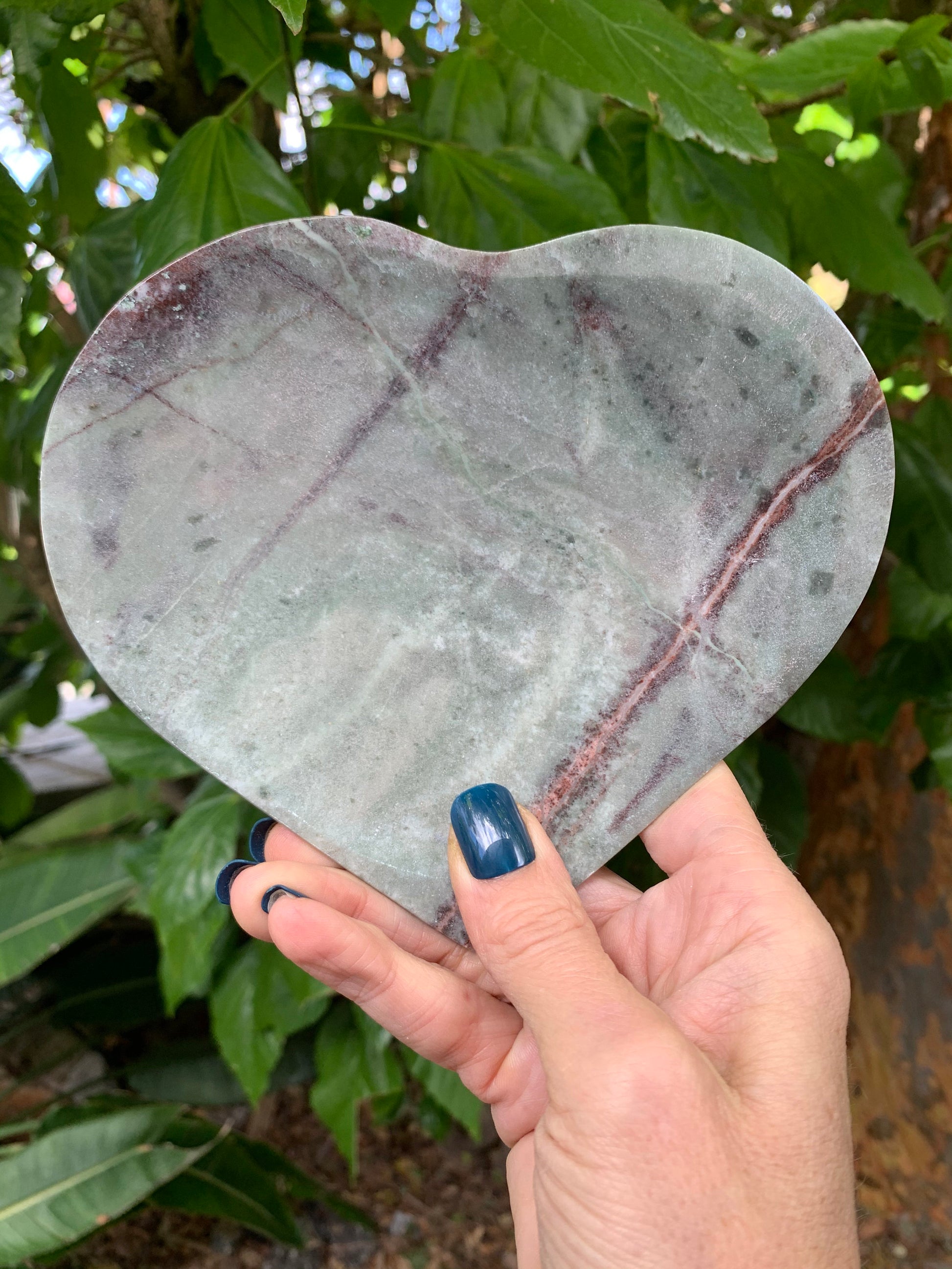 I’m in love with these Green Onyx heart dishes. They are such a unique and beautiful mix of colors and marbling.