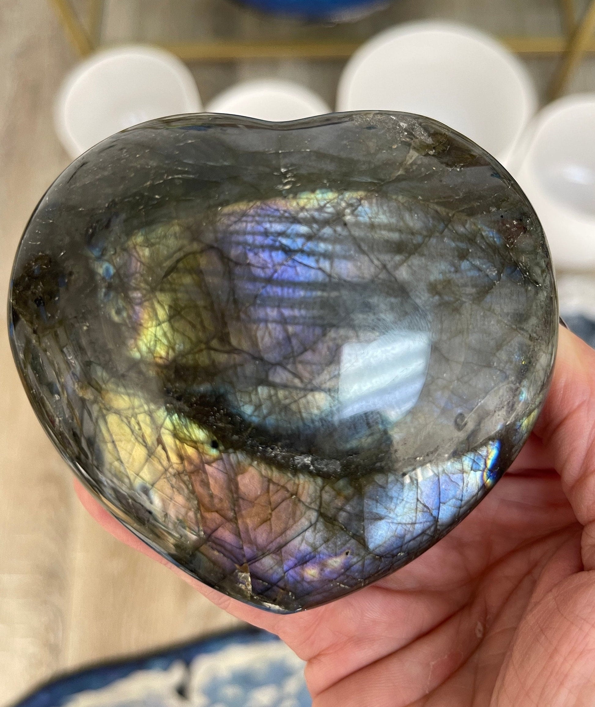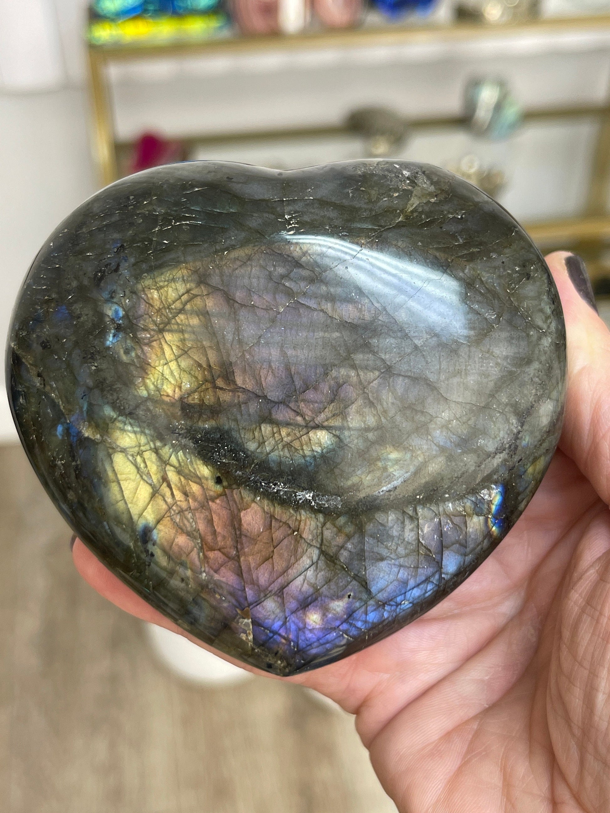 Illuminate your space with beauty, light and wonderful energy with this gorgeous AAA quality Purple/ Sunset Labradorite heart.