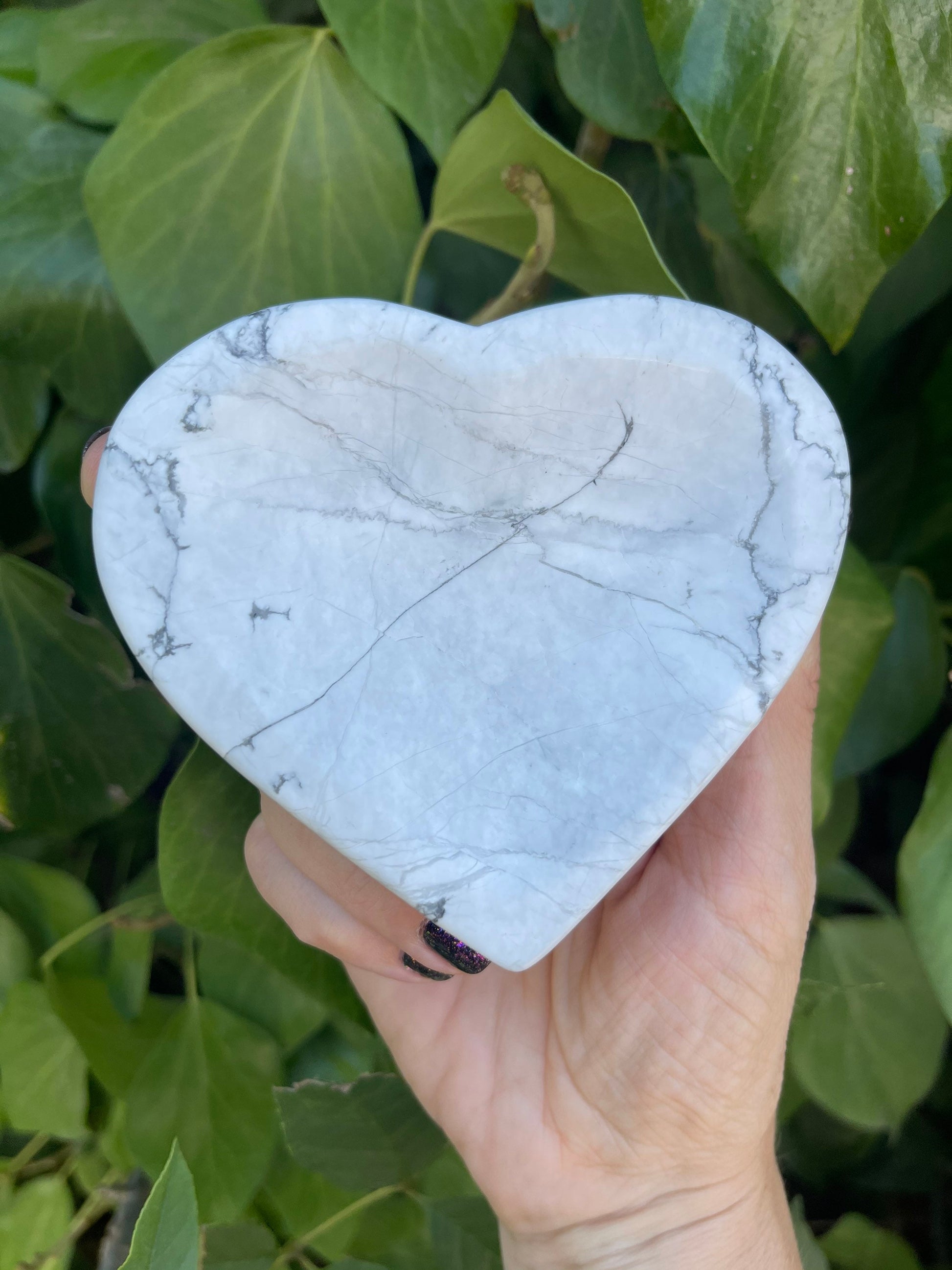 Elevate your space with this gorgeous hand carved Howlite heart bowl. I love the marbled effect created by the gray striations!