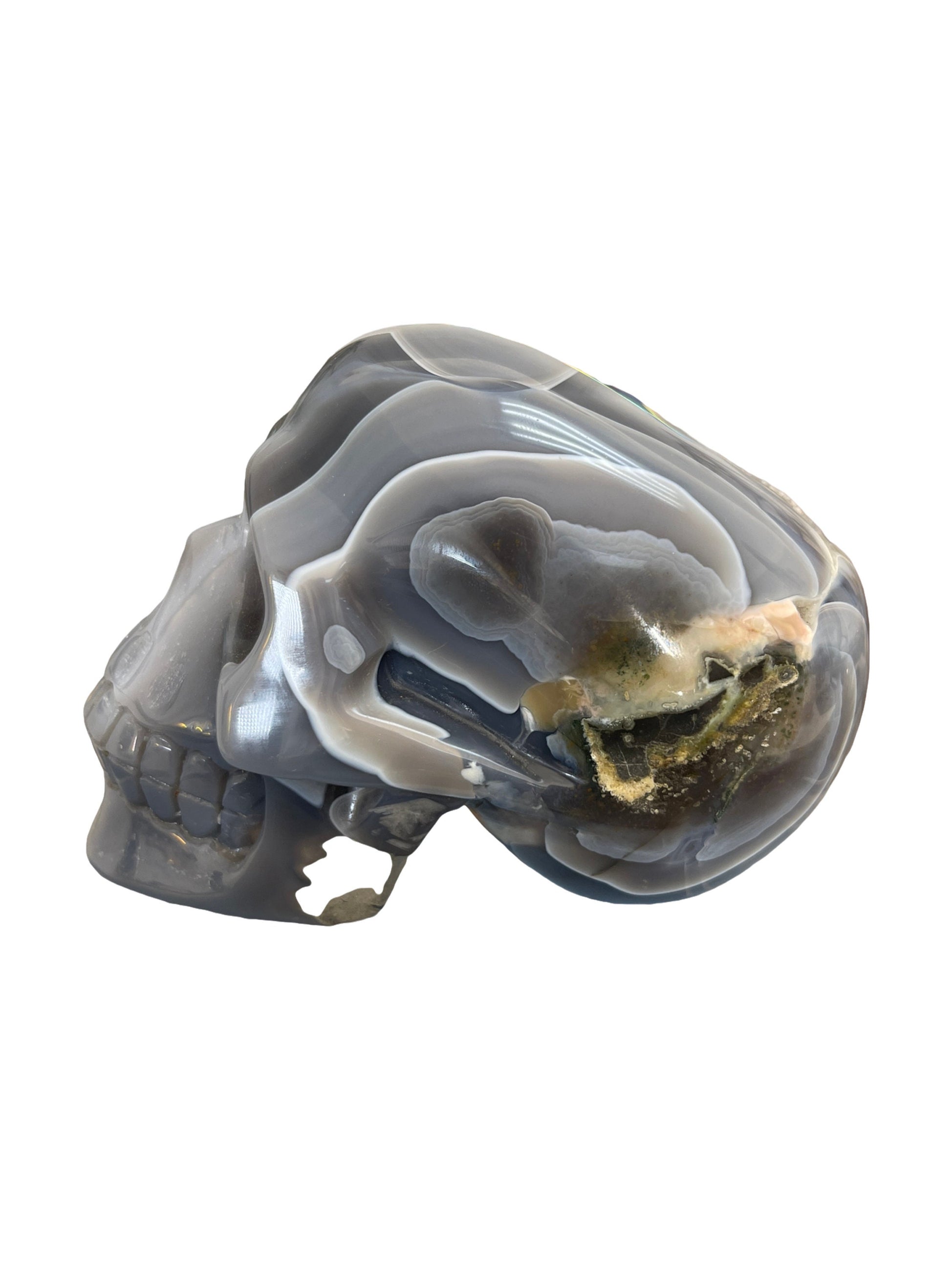 Illuminate your space with beauty and harmonious energy with this gorgeous large Druzy Agate skull.