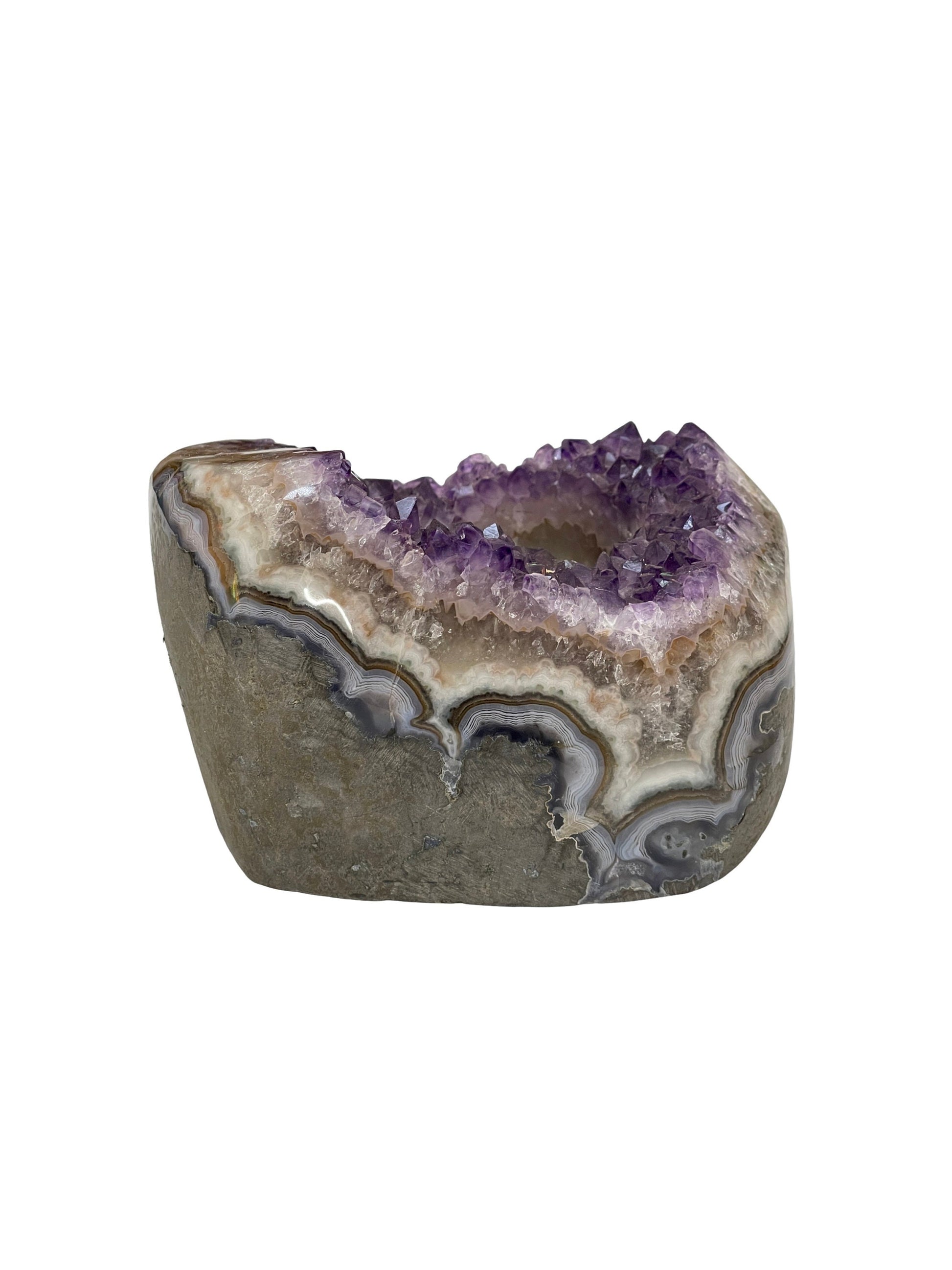 Amethyst is a stone of spiritual protection and purification. It is a Wind element stone that stimulates the mind, the intuitive and psychic abilities. It facilitates meditation and helps connect us to the spiritual realms. It opens and clears the Third Eye & Crown Chakras.