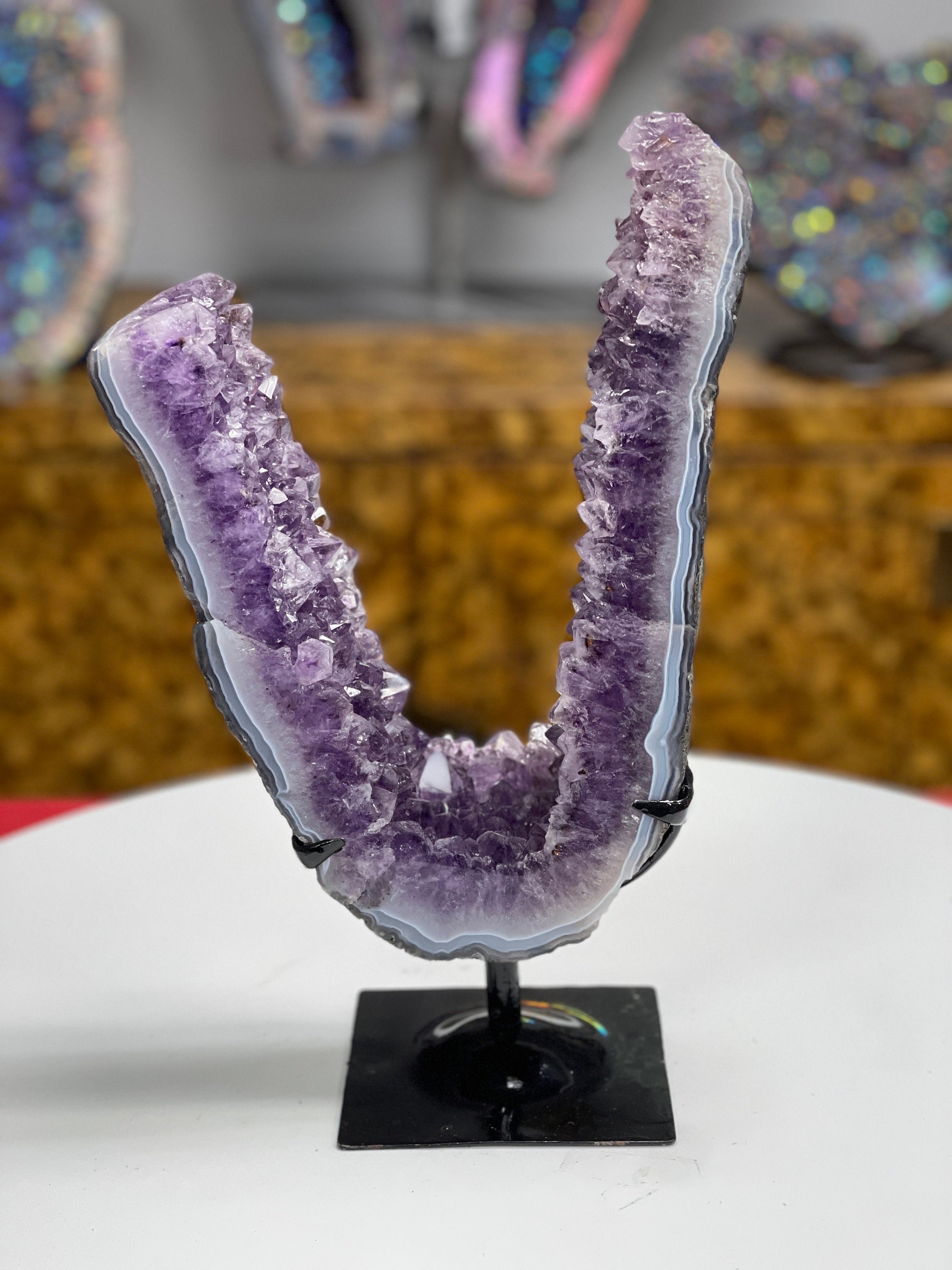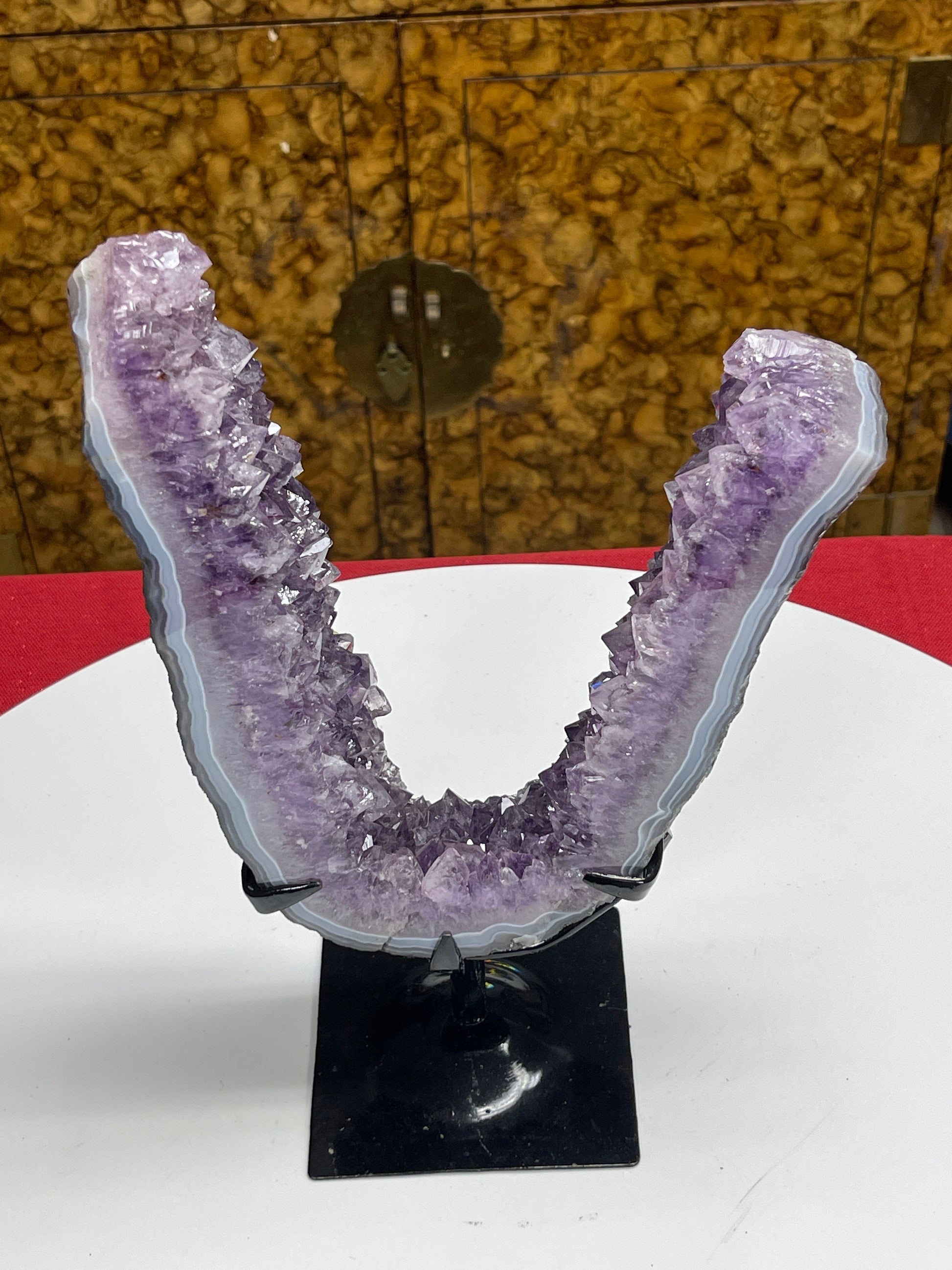 Large Amethyst Portal on Stand, Amethyst Statement Decor, Home Decor, Amethyst Geode, Calcite