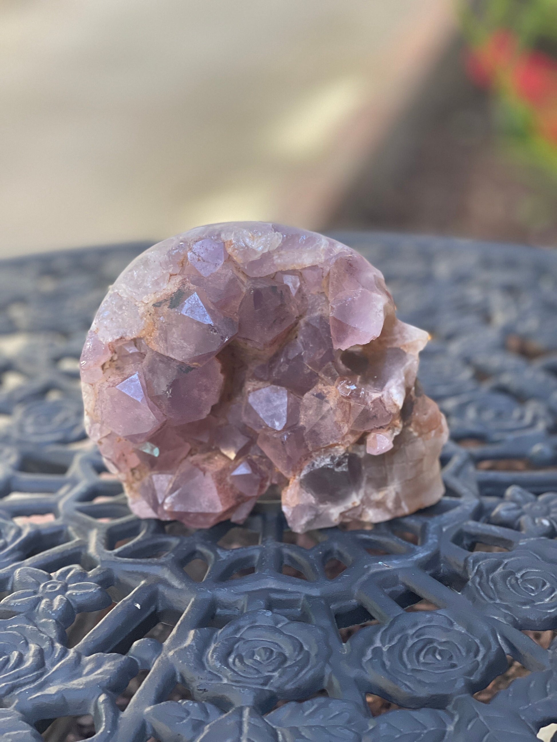 Illuminate your space with beauty and great energy with this gorgeous, unique raw Amethyst skull. This piece is so cool as it has a matte finish which is unusual. Has some hematite/ iron inclusions throughout & will definitely make a great addition to any skull lover's collection.