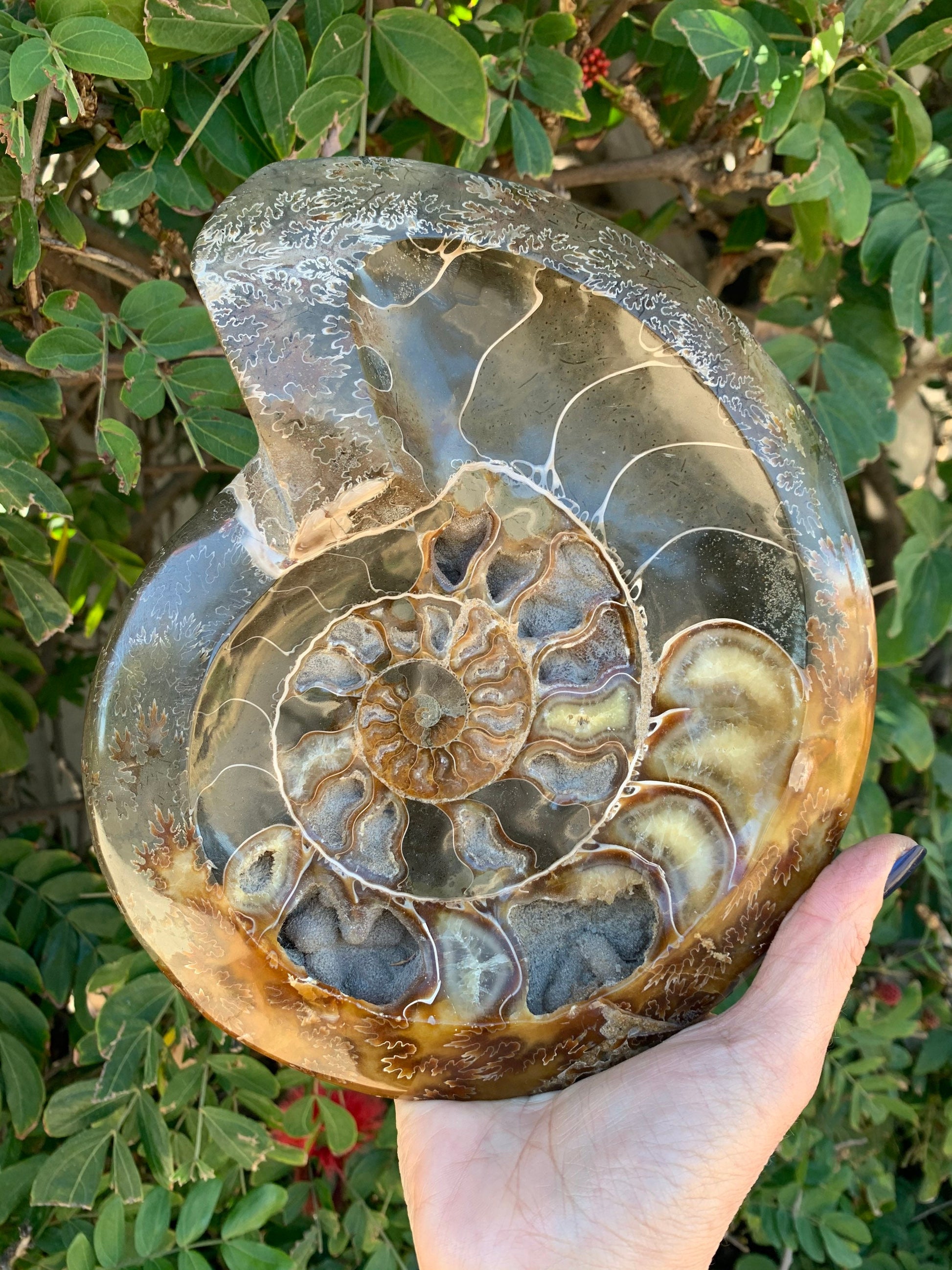 Surround yourself with white light and wonderful energy with this beautiful, Dendritic Ammonite bowl. This ancient fossil features dendrites and opalization. This unique bowl is sure to elevate your home!