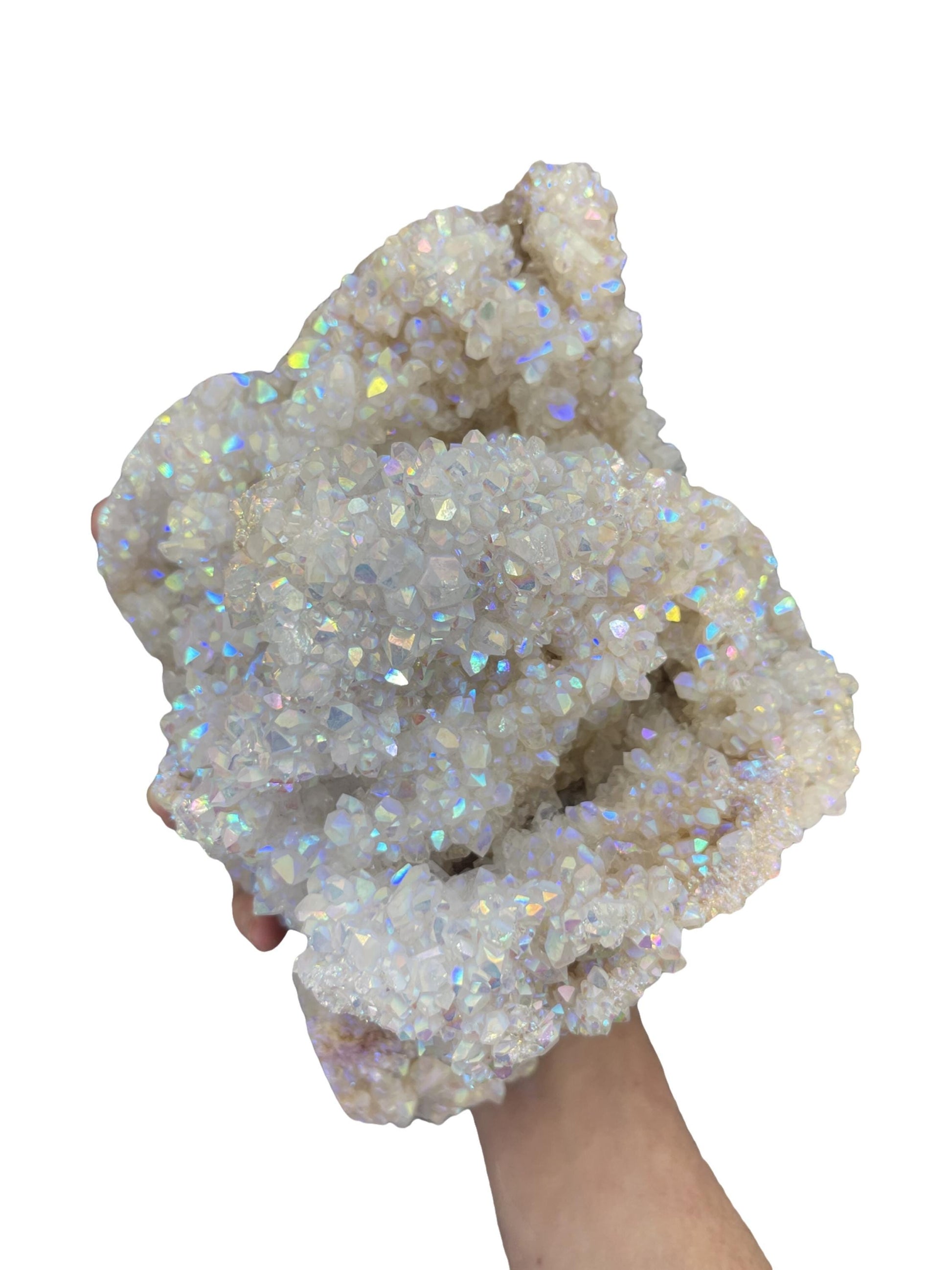 Coated with an iridescent angel aura finish, this crystal radiates a mesmerizing rainbow sheen that amplifies the natural energy of Pink Amethyst, known for its heart-healing, calming, and spiritually uplifting properties. Perfect as a centerpiece, this unique stone enhances emotional balance, encourages self-love, and promotes peace. Ideal for meditation spaces, living rooms, or any area needing a touch of high-vibration energy, this Angel Aura Pink Amethyst statement piece combines elegance with powerful spiritual benefits.