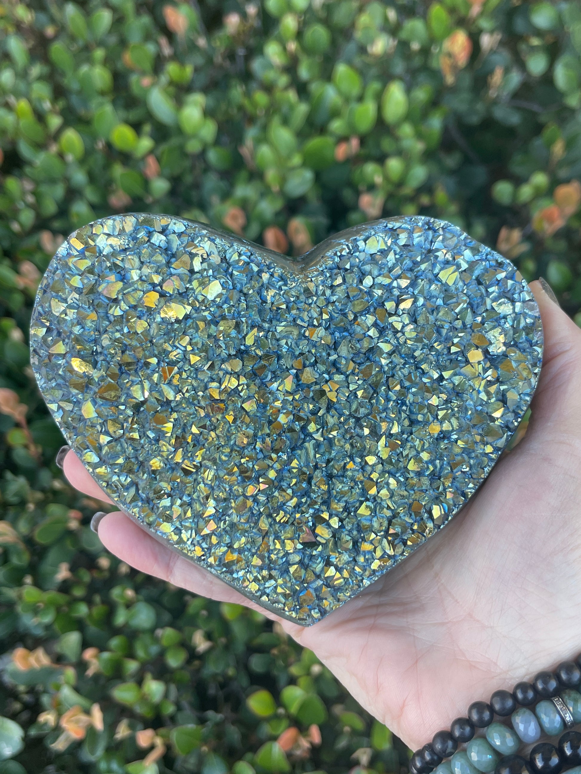 Large Titanium Aura Amethyst Heart, Rainbow Aura Quartz, Home Decor, Druzy Heart, Flame Aura, Home Accessories, Paperweight, Feng Shui,