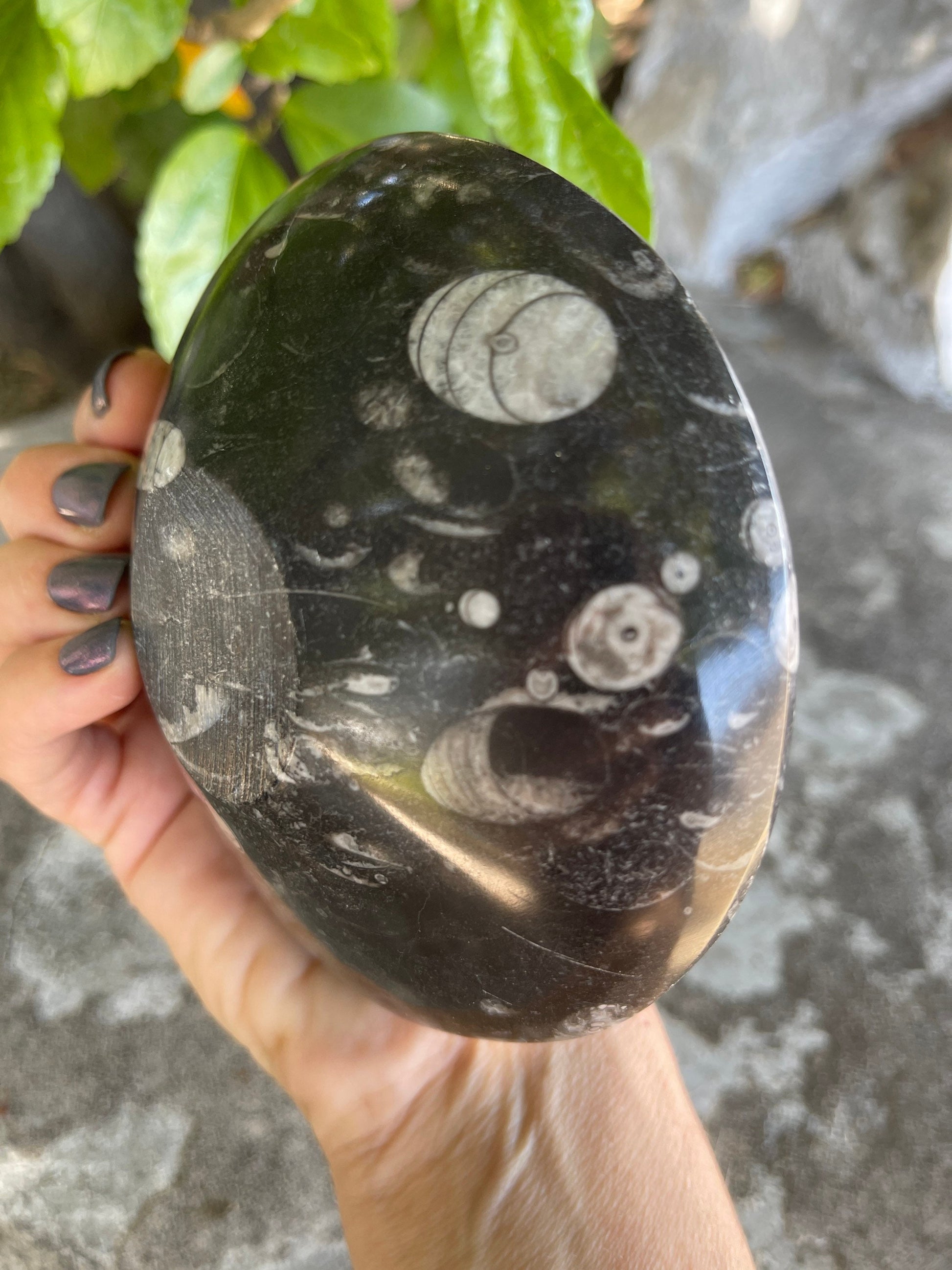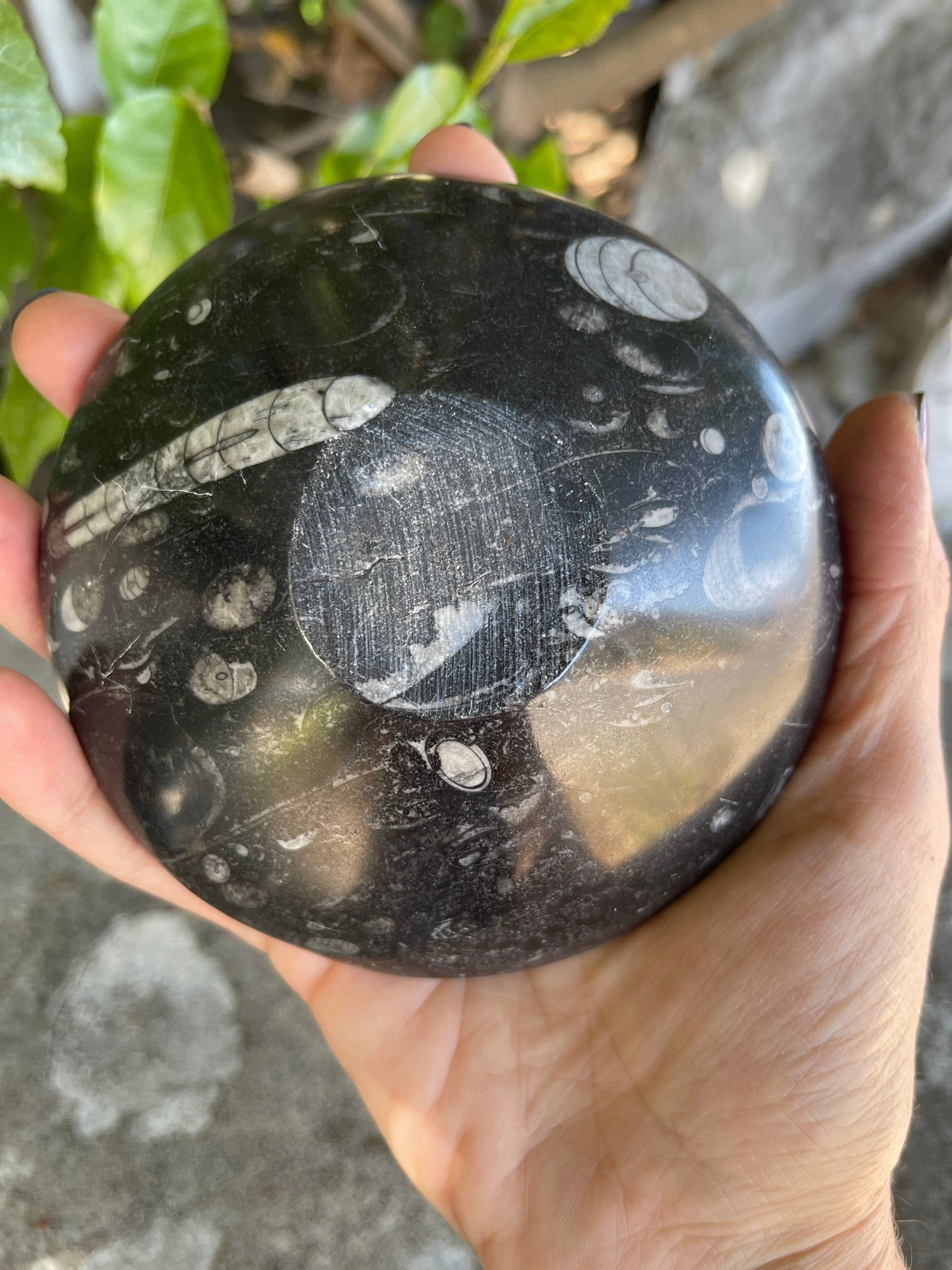 Surround yourself with beauty and wonderful energy with this unique Orthoceras fossil bowl