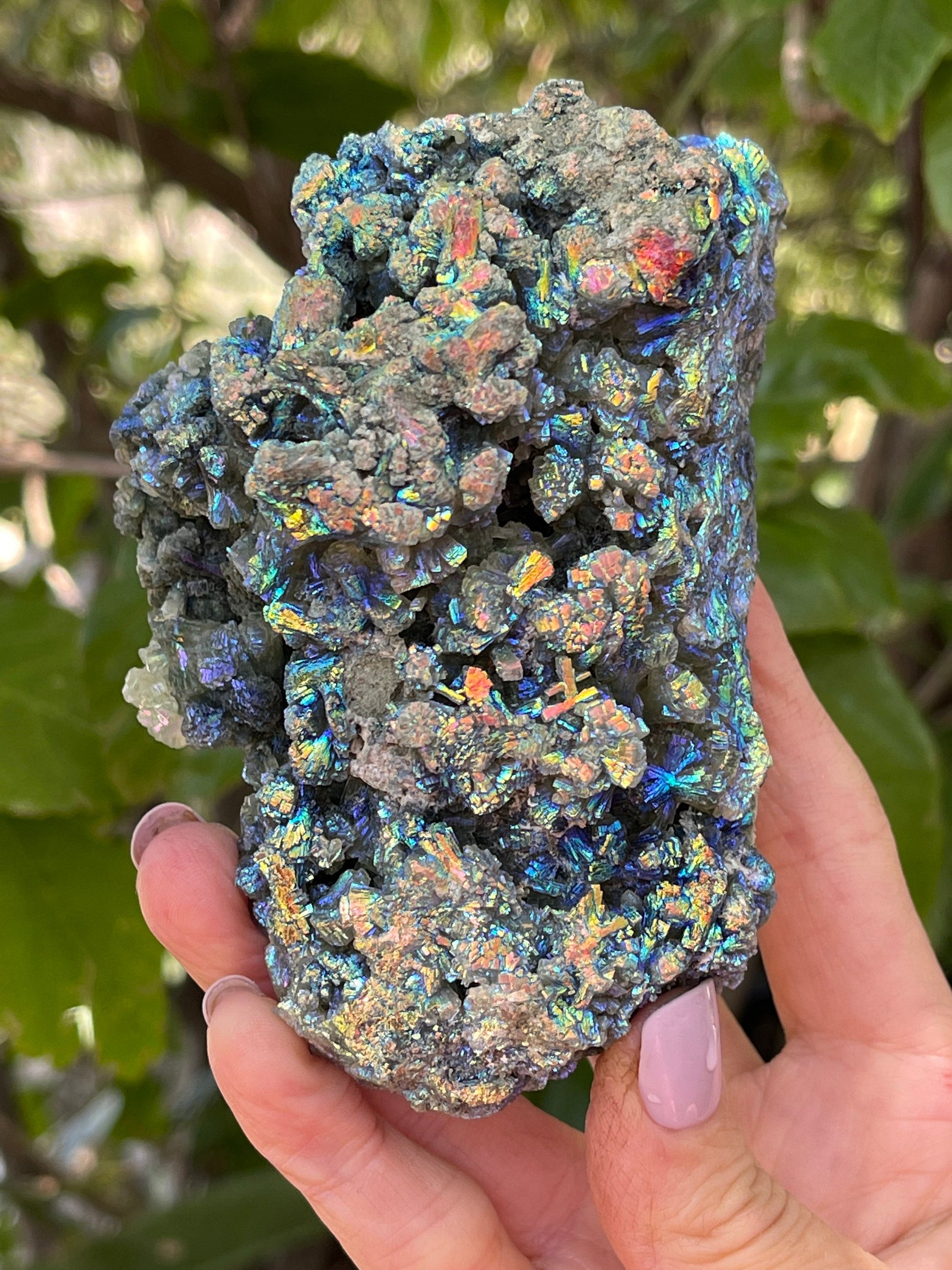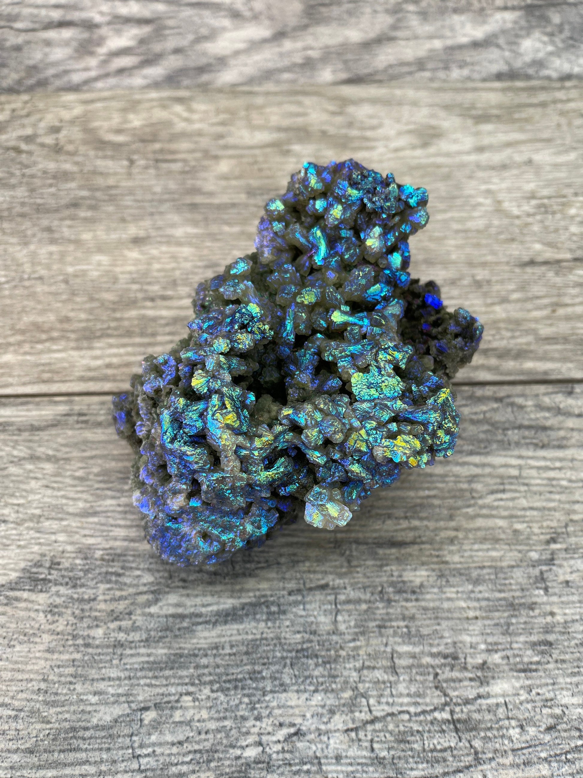 These beauties are a magical, ethereal mix of colors in which the crystal formation shimmers and changes color as it moves and sends light in different angles.