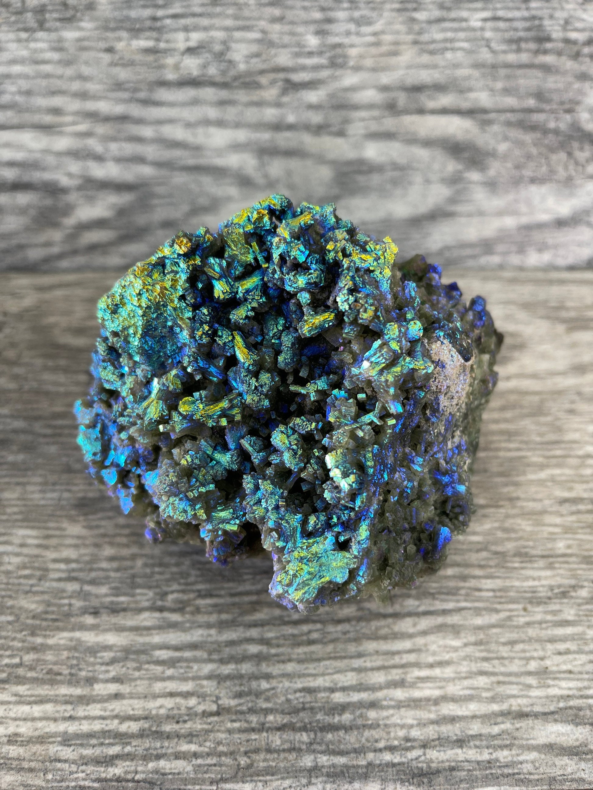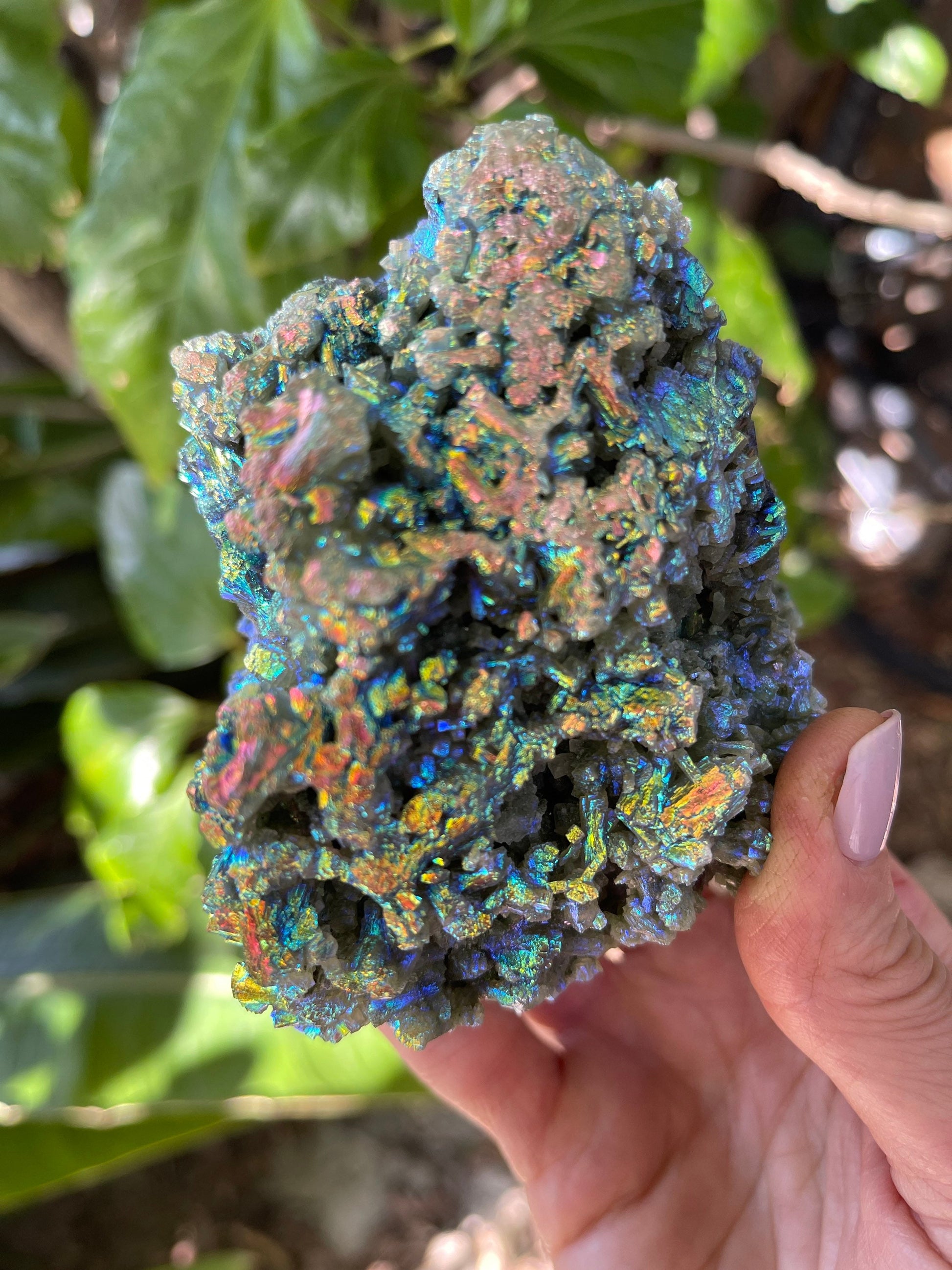 These beauties are a magical, ethereal mix of colors in which the crystal formation shimmers and changes color as it moves and sends light in different angles.