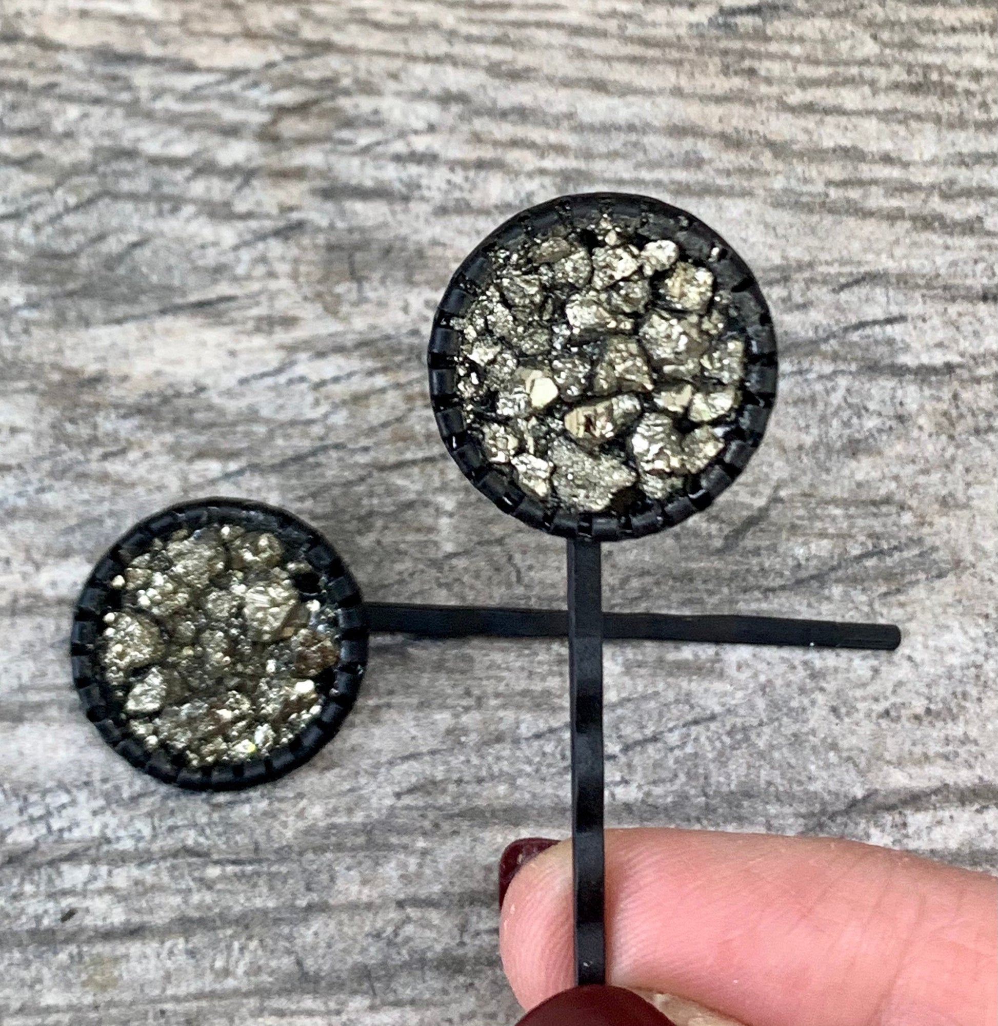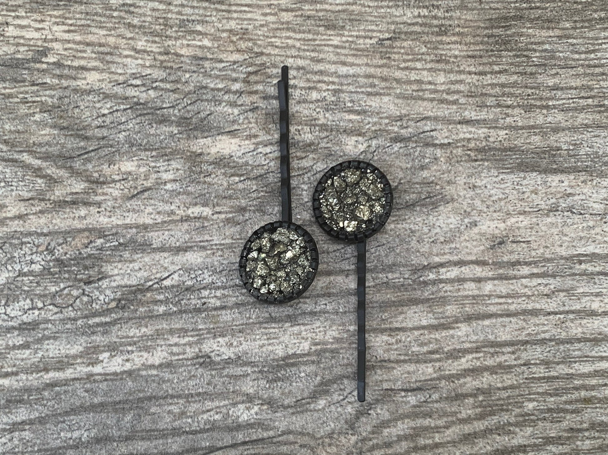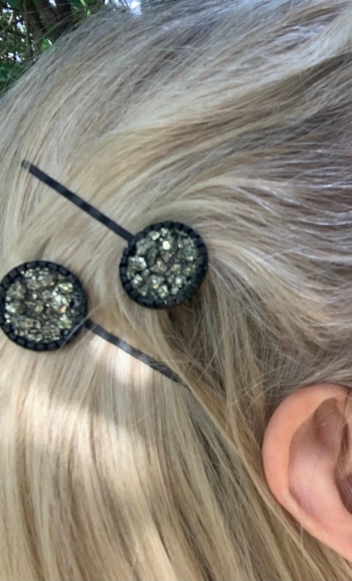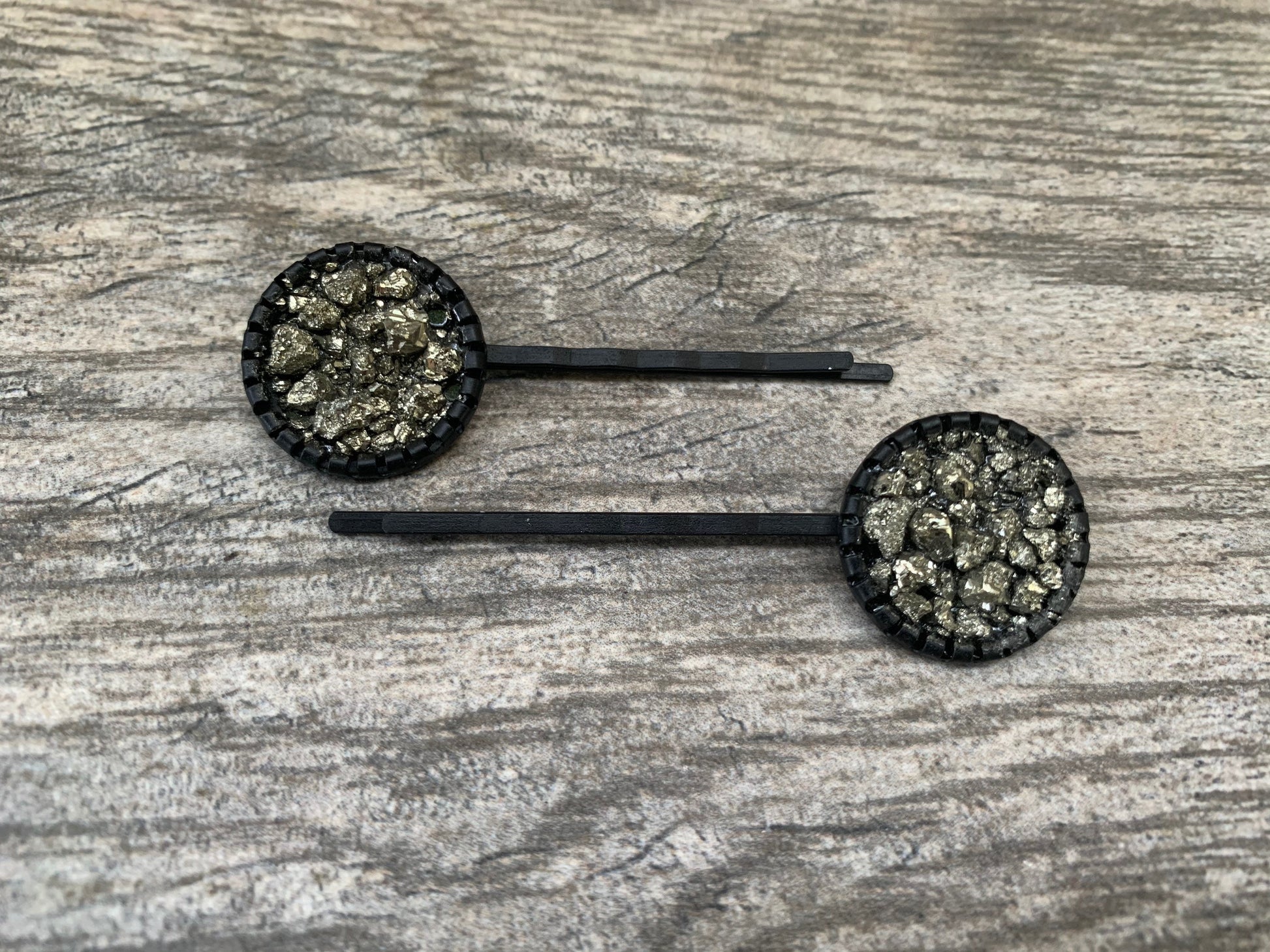 Pyrite Hair Accessories, Pyrite Bobby Pins, Pyrite Hair Pins, Crystal Bobby Pins, Hair Jewelry