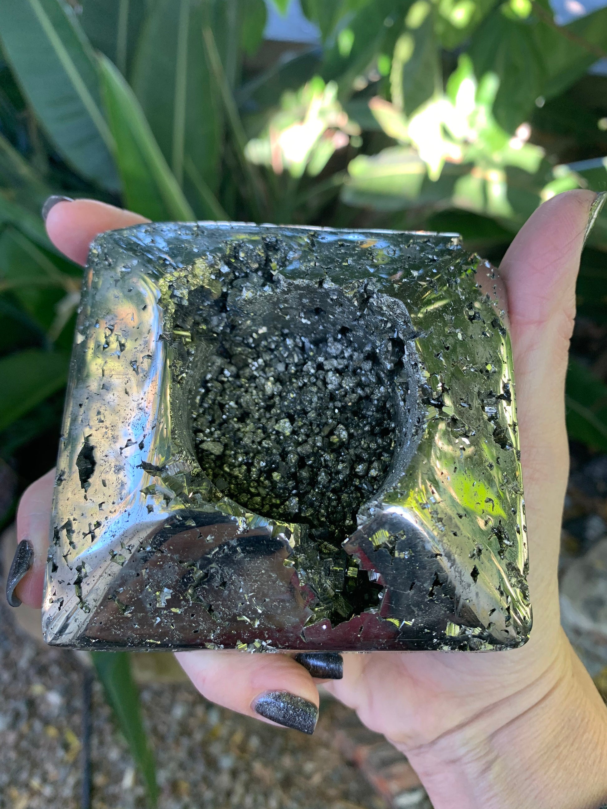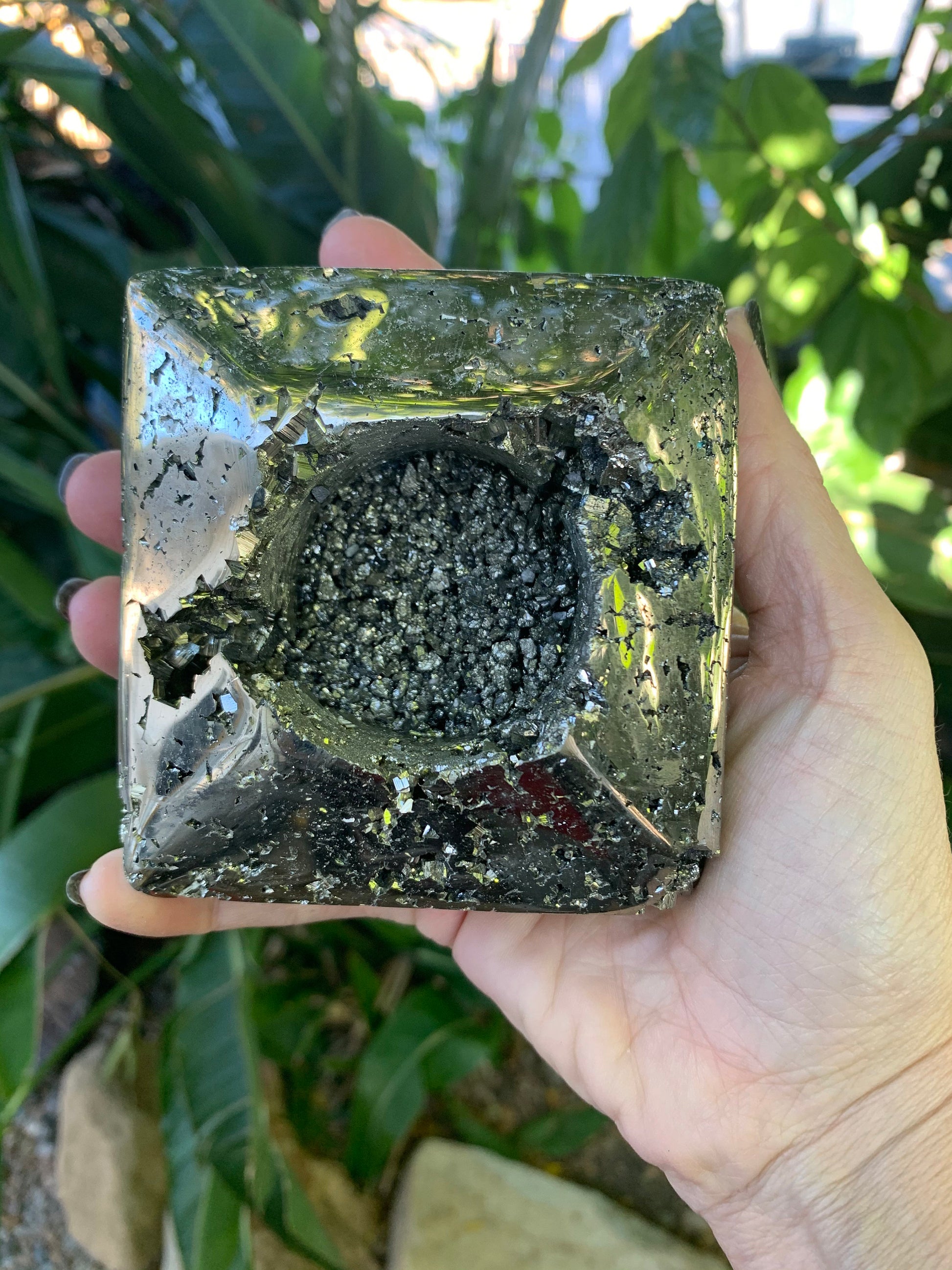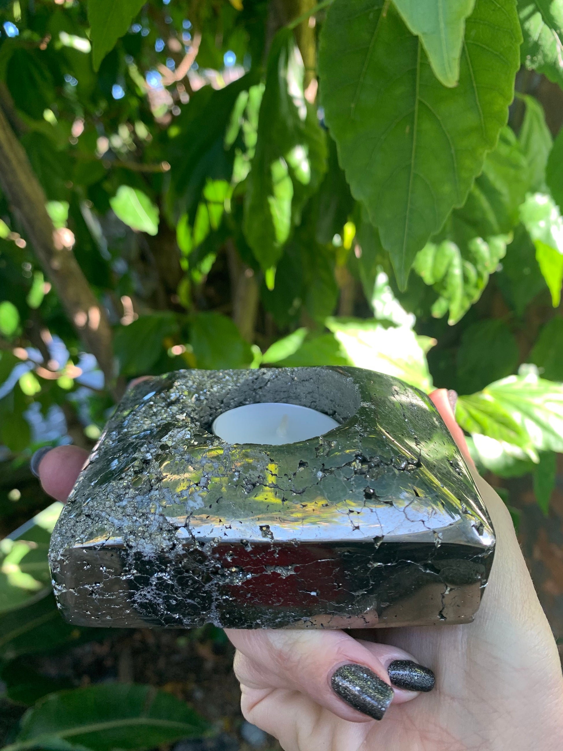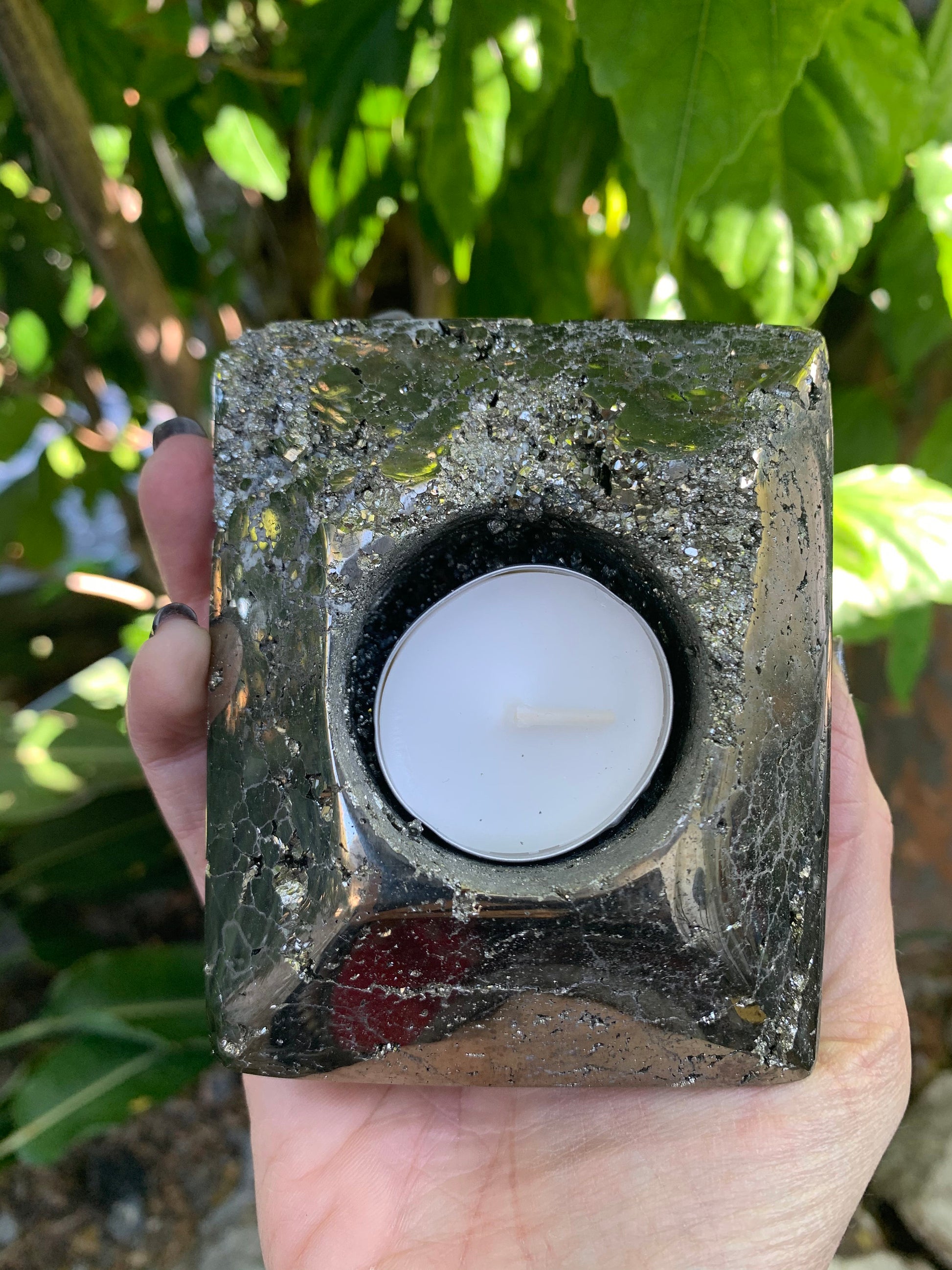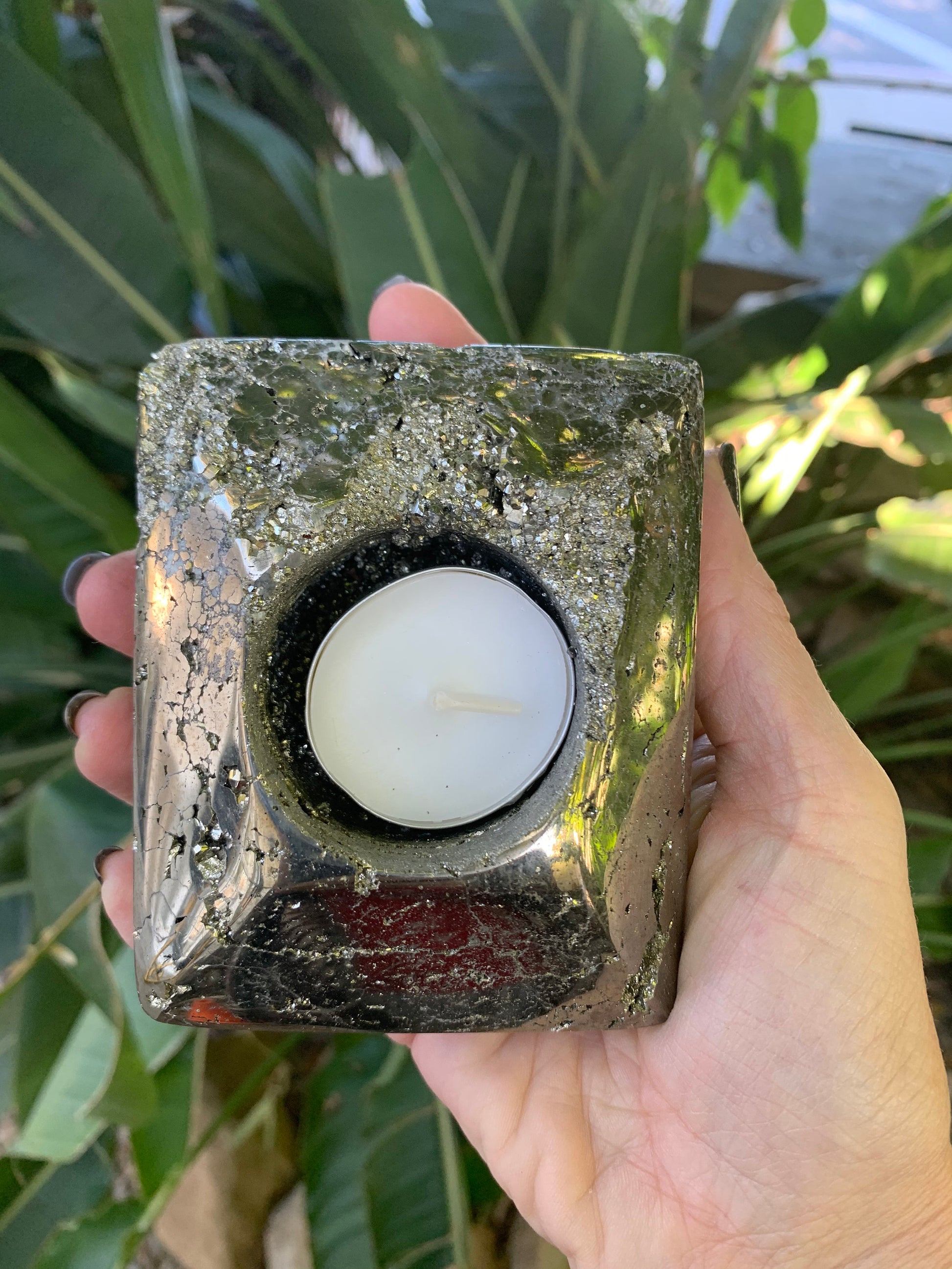 Pyrite Tea Light Holder, Raw Pyrite Candleholder, Square Candleholder, Pyrite Carving, Home Accessories, Home Decor, Amethyst, Reiki, Chakra