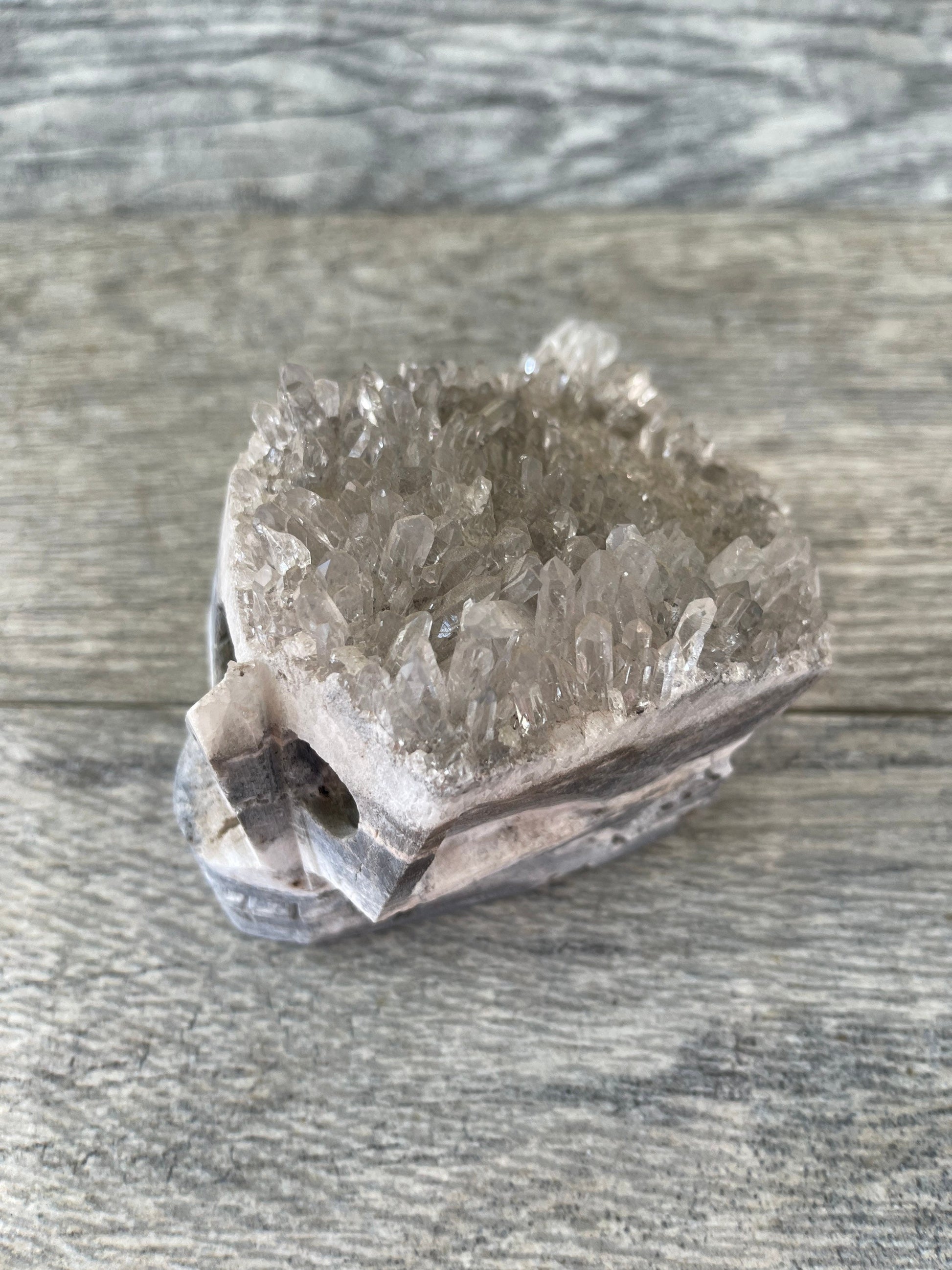 Quartz is one of the most powerful amplifiers of energy. It embodies the the concept of clarity and the value for becoming a vessel for the light of the divine. Quartz can be programmed. It brings clarity of thought and purpose to one's mind and heart. It can be used to enhance the communications of guides and amplify psychic abilities.