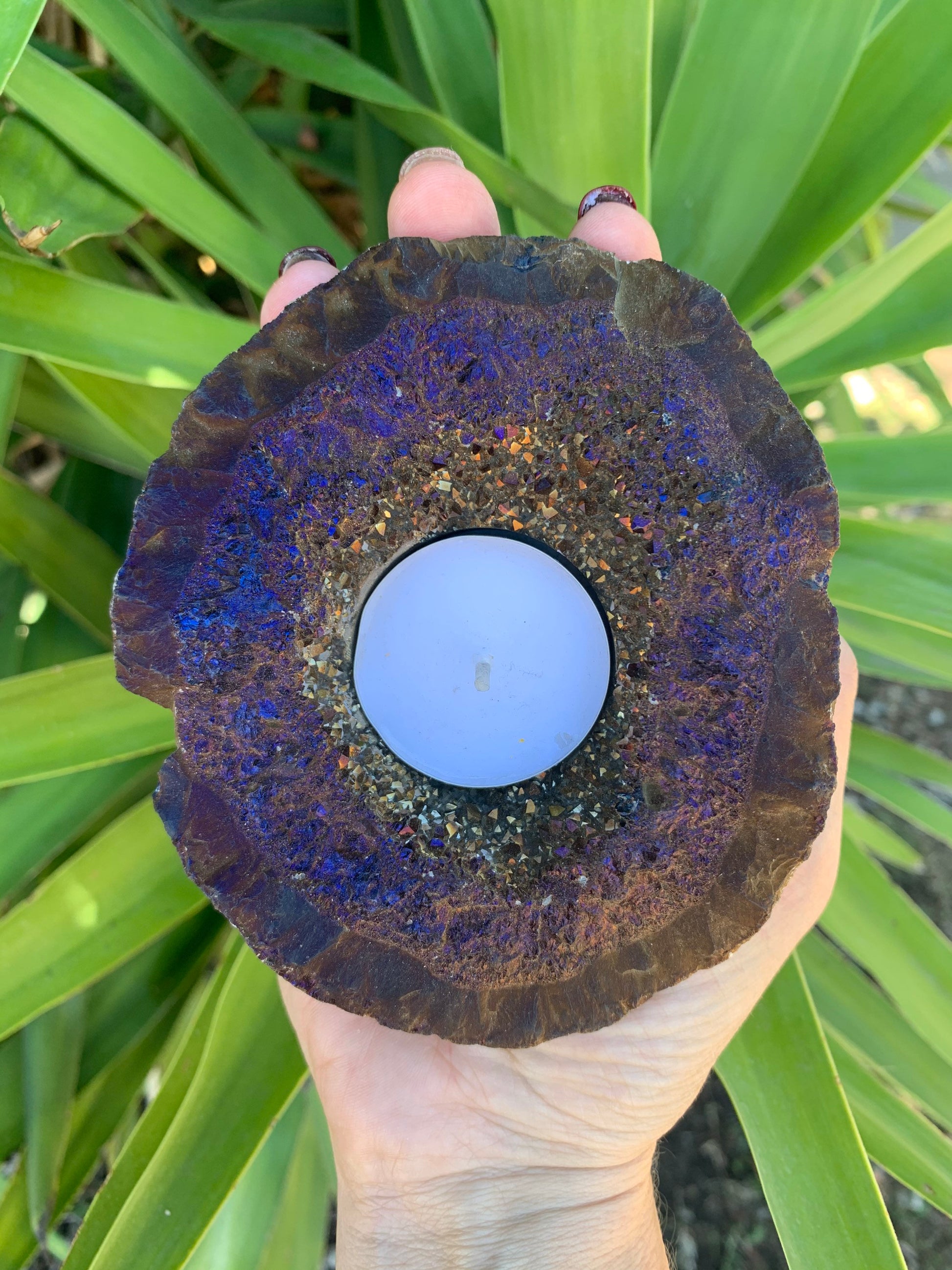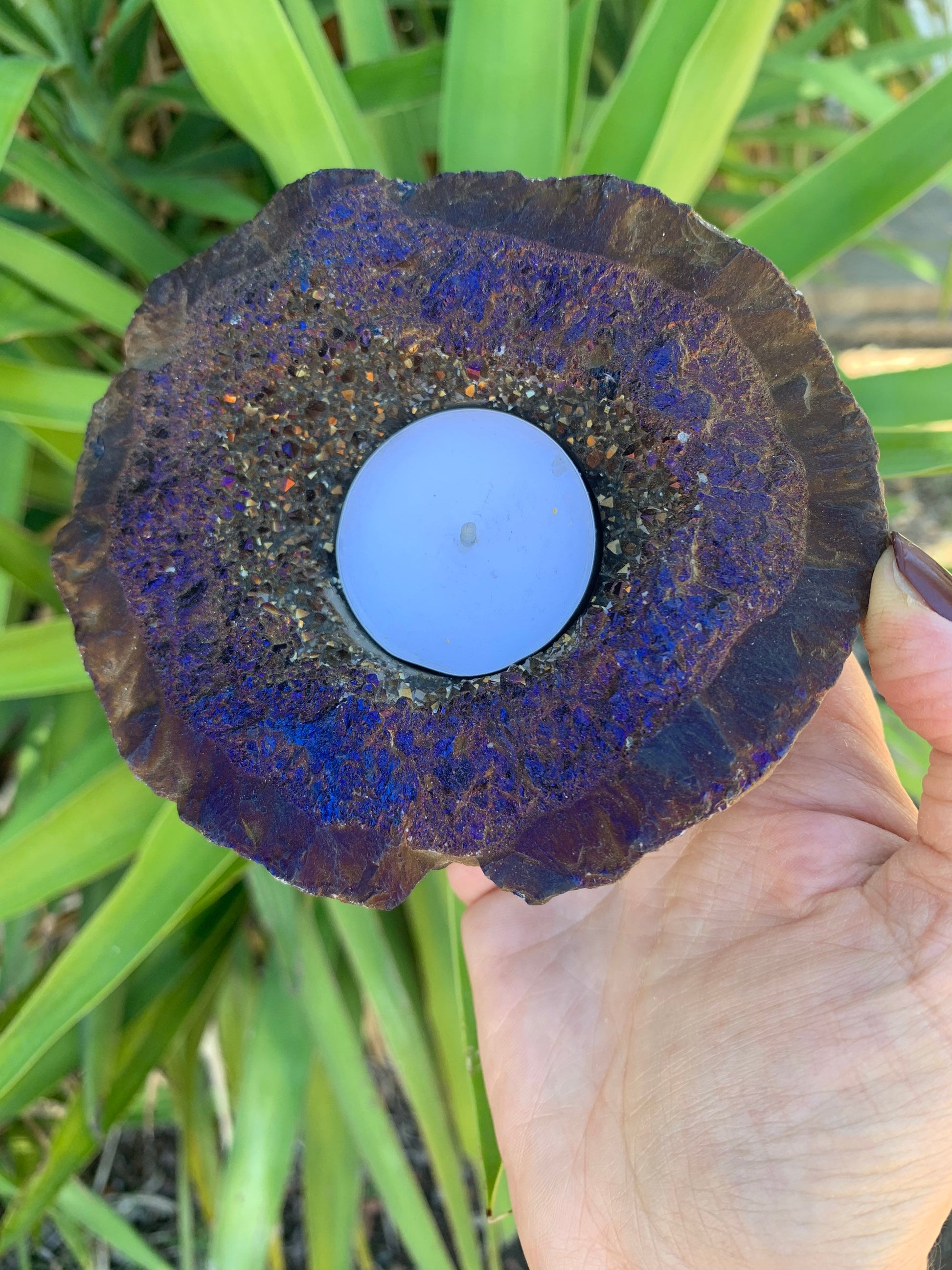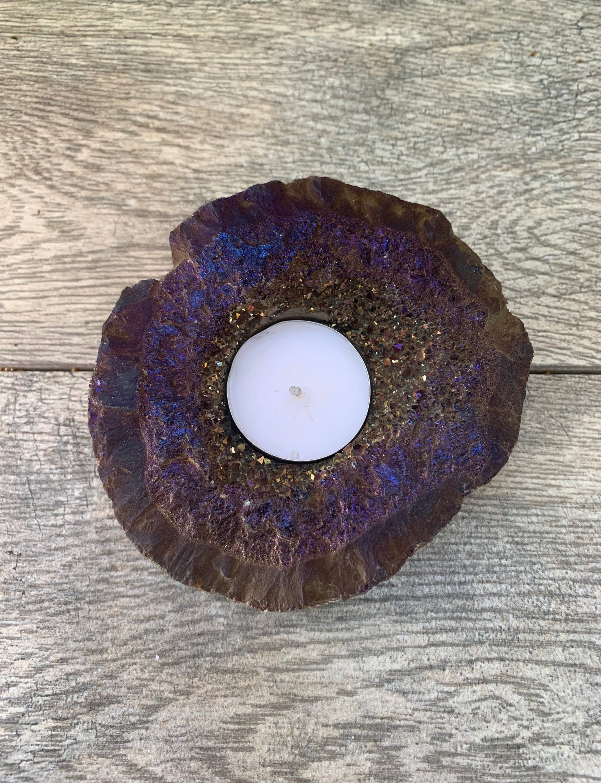 Titanium Aura Candle Holder, Aura Quartz Geode,Home Accessories, Home Decor, Amethyst, Reiki, Chakra, Meditation, Altar