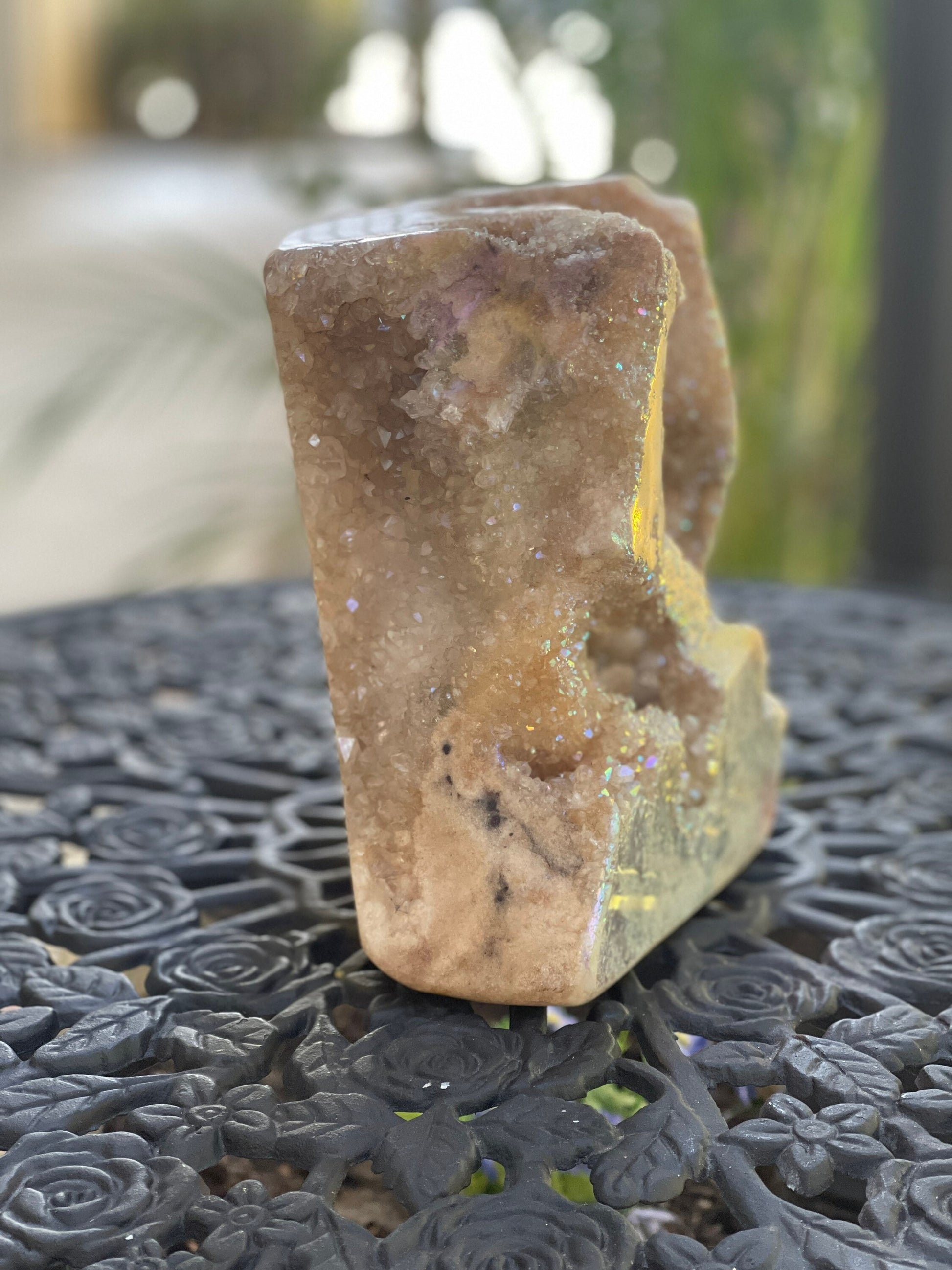 XL Aura Pink Amethyst Cut base, High Quality Aura Crystals, Pink Amethyst, Angel Aura Amethyst Home Accessories, Home Decor, Crystal Shop