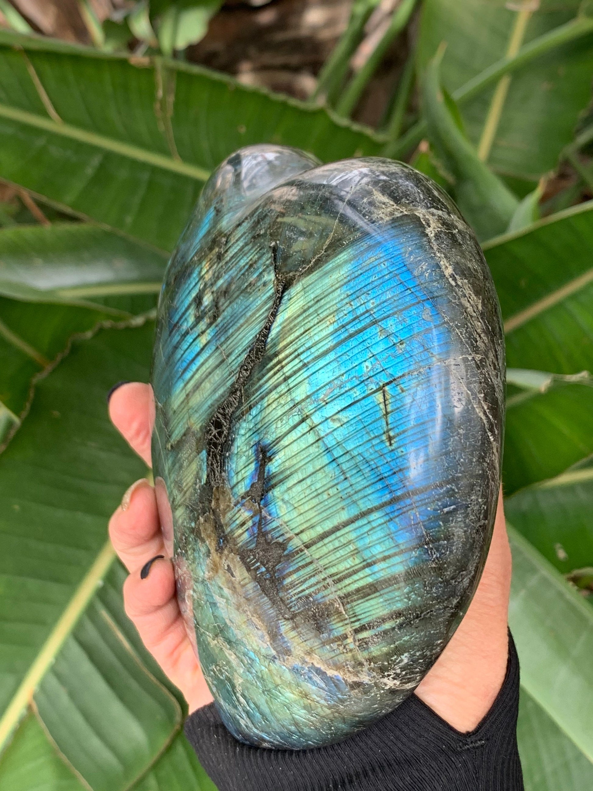 Surround yourself with white light and wonderful energy with this stunning XL Labradorite heart.